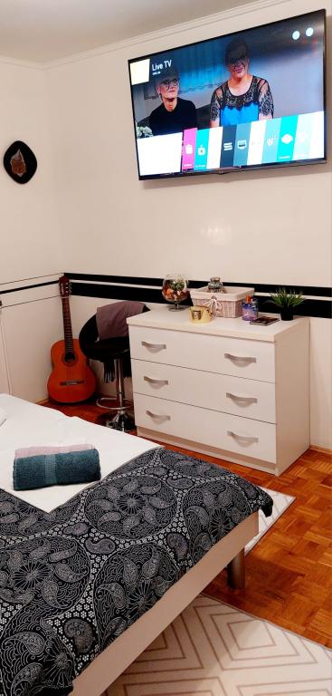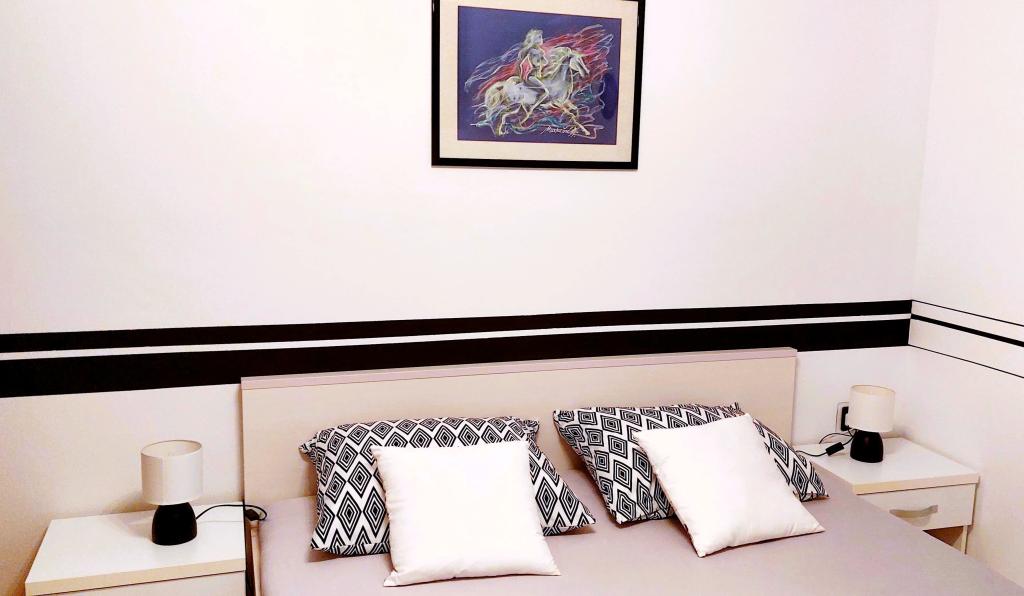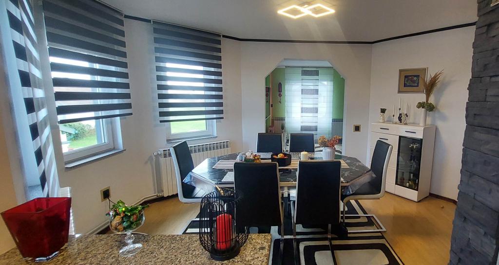 Apartment Matea offers numerous facilities that will make your stay unforgettable. Relax on the balcony overlooking the surroundings or enjoy shared moments in the garden with a barbecue. 3-4 parking spaces are provided for your cars and the possibility of using the garage. The spacious terrace is perfect for relaxation, and the interior of the apartment exudes warmth thanks to the fireplace. The comfort and quality of the stay are ensured by WiFi, smart TV, IPTV-Netflix, air conditioning, central heating, washing machine, iron, hairdryer, dishes, baby cot and the possibility of long-term rental. The apartment provides a low-allergy environment. Bicycles are also available for exploring the beautiful surroundings. A laundry area with a washing machine ensures convenience during your stay. The bedroom with a comfortable bed, smart TV and elegant furniture provides the perfect refuge after a busy day. Don't miss the opportunity for an unforgettable vacation in Apartment Matea. Book your stay and enjoy this beautiful place! Welcome