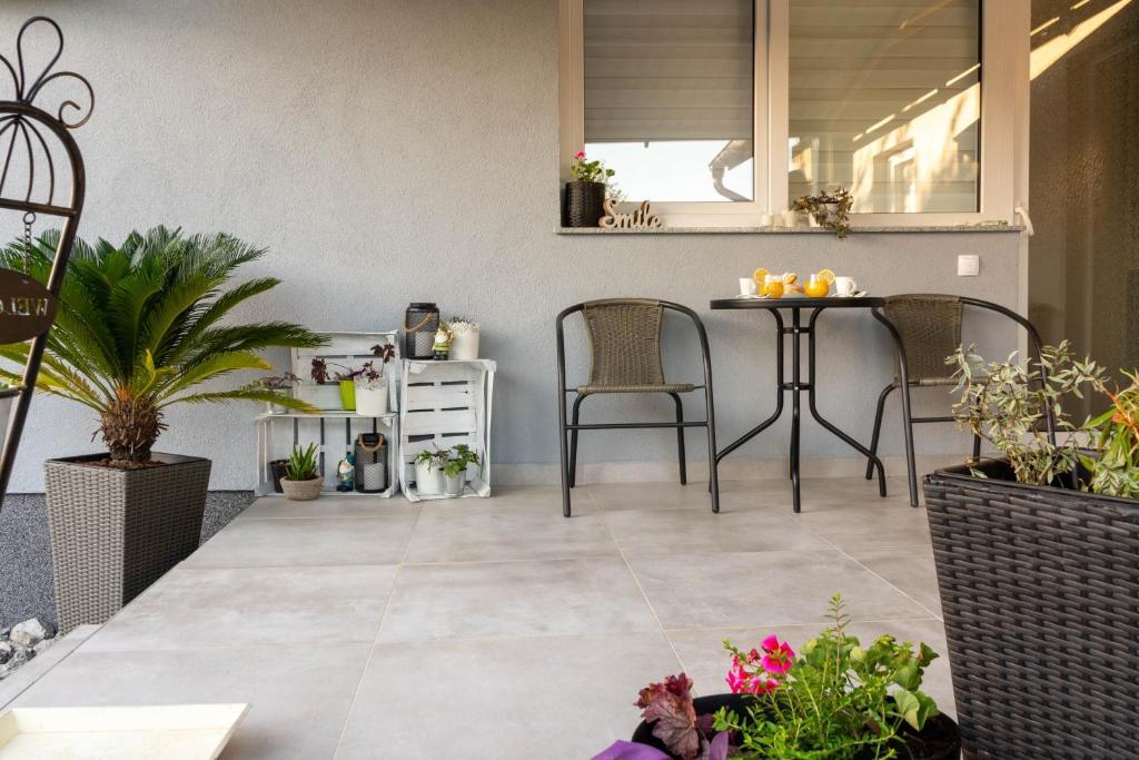 The house consists of two studio apartments. Each studio apartment has 1 bedroom with a fully equipped kitchen, 1 bathroom, linen, towels, soaps, shower gels, shampoos, flat screen TV, shared terrace for pleasant enjoyment of coffee with a large garden. The apartment is located in a quiet street approximately 500 m from the city center and is tucked into the plot. A courtyard and a large garden separate the apartment from the road, which allows for a quiet stay in the apartment and on the terrace. There is a parking lot for private cars in the courtyard.