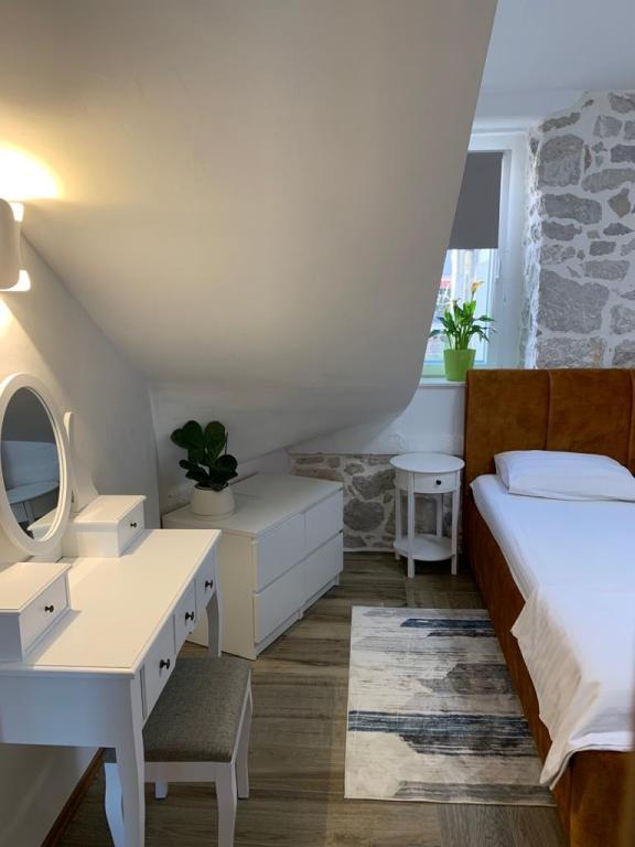 The old house is a perfect family place to enjoy hot summer days and fresh air. The apartment consists of three spacious rooms, each of which has its own bathroom, as well as a comfortable living room and a fully equipped kitchen with a dining room. In addition, guests have additional facilities at their disposal: a beautiful balcony with a view of the sea, ideal for drinking morning coffee or an evening drink, as well as a terrace and a fireplace that will allow pleasant socializing in the evening. The property is only a 5-minute easy walk to the beautiful pebble beach in the center of town, in addition, there is also a sandy beach nearby, which is only a 15-minute walk from the house. The old house is the perfect place to relax and enjoy all that Blace has to offer.