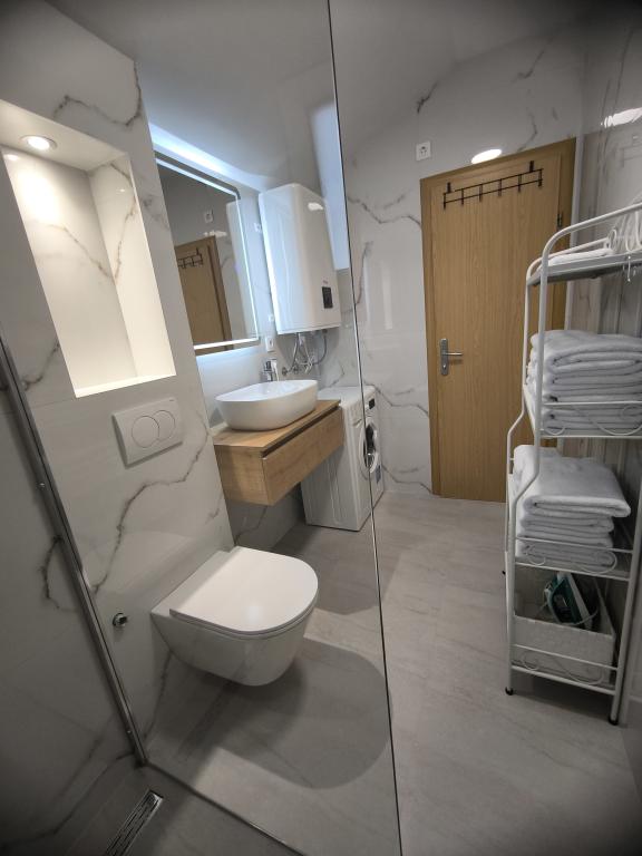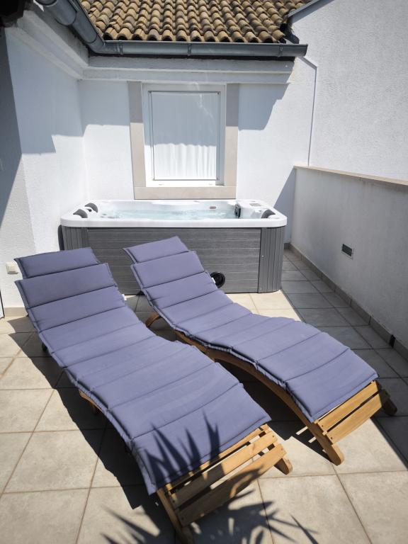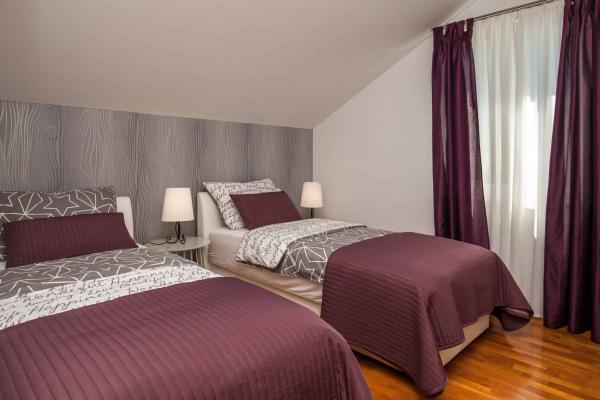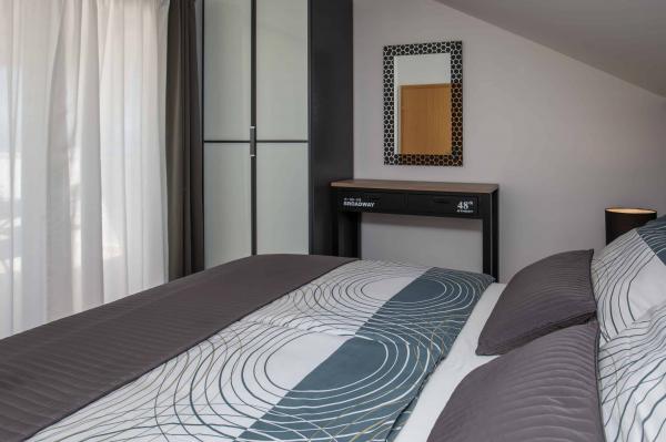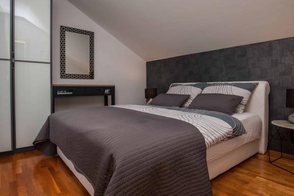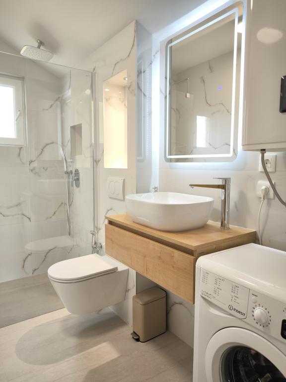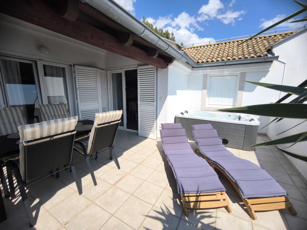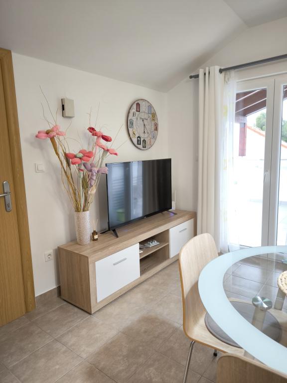 Apartment Dreams of Bol is located in Bol on the island of Brač. It is a 10-minute walk from the center and is located in a quiet environment. The apartment has its own parking space, an unobstructed view of the island of Hvar, the famous Zlatni rat beach and the highest peak of the Dalmatian islands, Vidova gora (778m). Just 50 meters below the accommodation facility there is a restaurant, 2 supermarkets, a pizzeria and a stop for the tourist train that goes to the Zlatni rat beach. This apartment offers two bedrooms, one with a double bed and one with separate beds that can be connected on request. In the living room there is a sofa bed that can be pulled out into a comfortable bed for 1 to 2 people. In addition, we offer a fully equipped kitchen, a bathroom with a washing machine and a spacious terrace (protected from view) with an outdoor table and comfortable deck chairs and a Jacuzzi. The apartment is air-conditioned, with two air conditioning units, in the living room and one bedroom, WIFI access and LED TV. We also have additional space for storing bicycles. One-time cleaning 50€