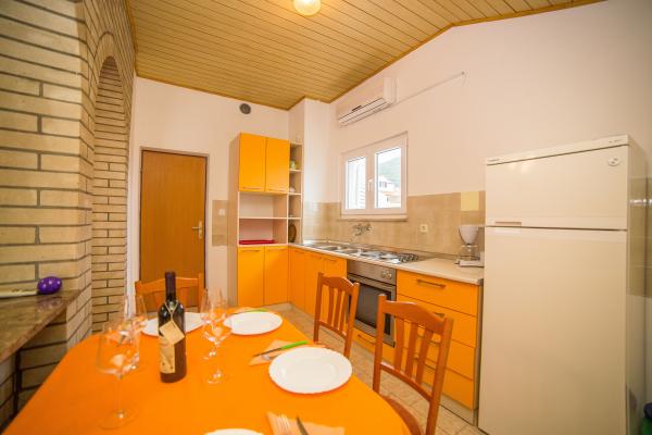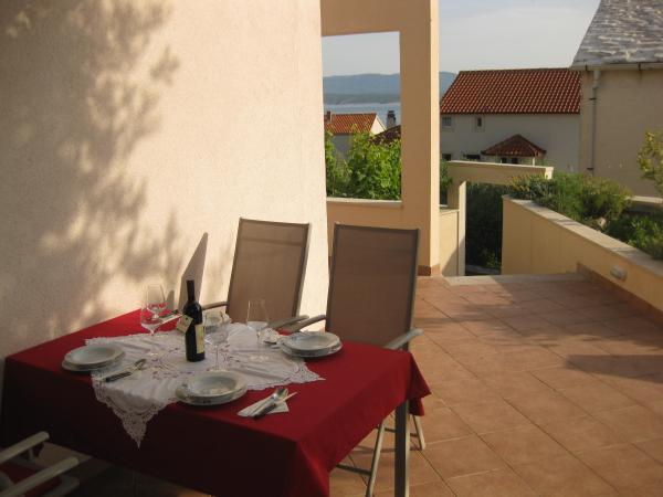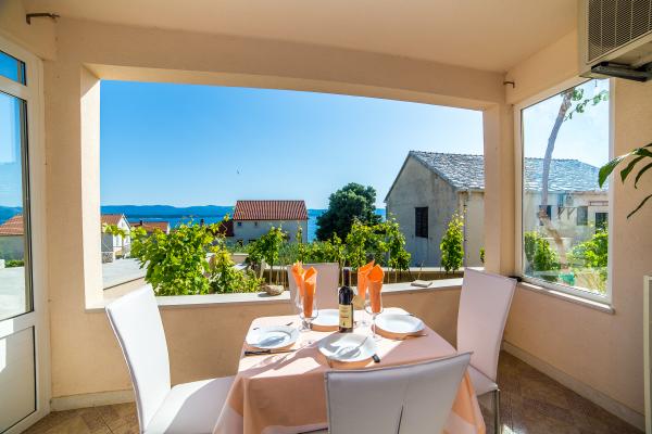 Center Apartments are located in the city center, 50m above the harbor. Near the post office, bank, pharmacy, police, market, restaurants and a supermarket. Beaches near the Dominican monastery and the hotel White House is a 5-minute walk. From the island of Bol to the beach Zlatni rat there are local boats and a tourist train. The house was built 10 years ago in a modern style. The house has a private parking. Our guests can use the barbecue for the preparation of fish or meat roasts. In the same house he lives and our family and we are always happy to serve our guests. Apartments Center is composed of three separate četeverokrevetna apartments. The apartments are well furnished and equipped and have private terraces overlooking the sea. Two additional apartments have satellite TV, Wi-Fi Internet, and two air conditioners. Apartments Mima are situated on the west side of Bol, in a prime location, just 300 meters from the town center and 200 meters from the beach. The beach Zlatni rat is 15 min. on foot.