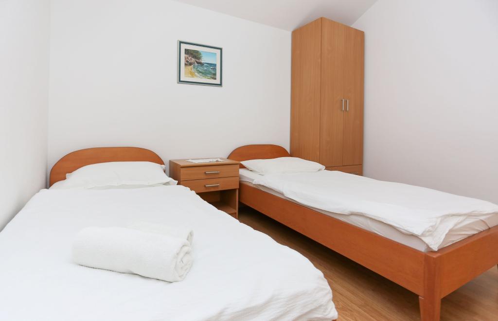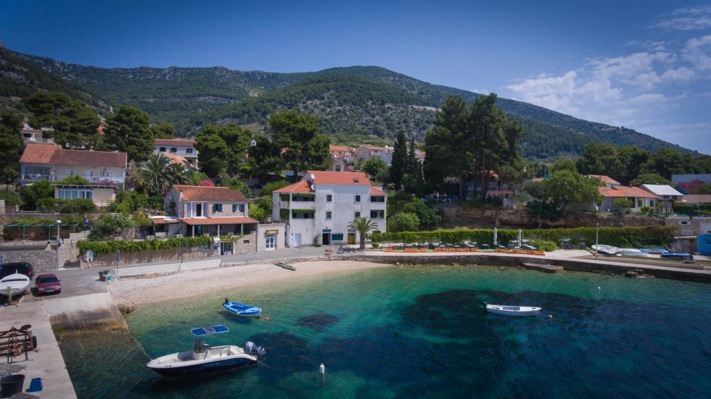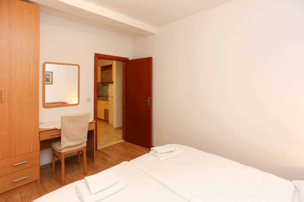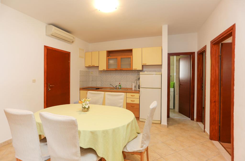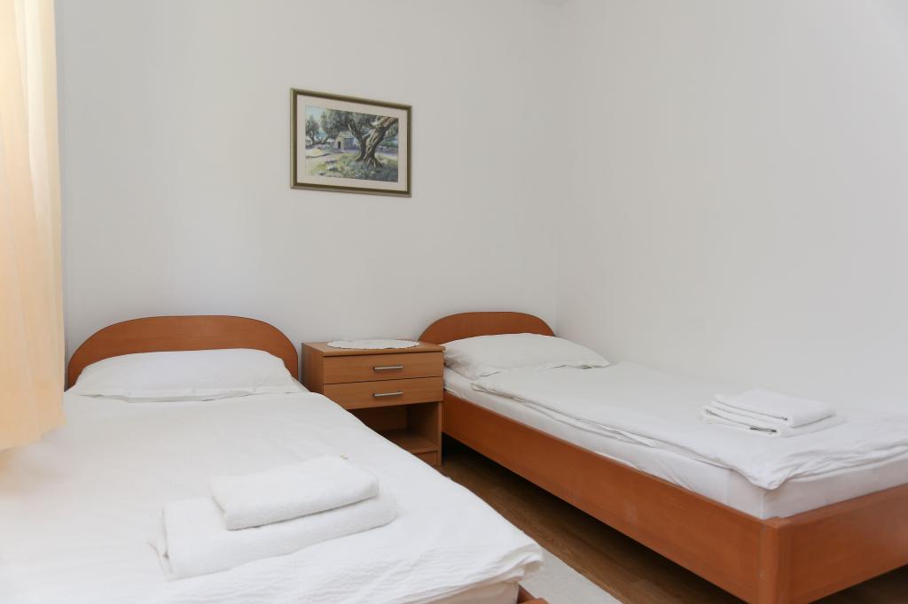 Apartments Laguna are located halfway between the town center and the Dominican Monastery. Each apartment has a double room, a room with two single beds, a bathroom, a kitchen and a large terrace with a sea view. The town center is 150 meters away. Within a 100-meter radius, there are 3 a-la-carte restaurants with Dalmatian cuisine and two pizzerias. The restaurant on the ground floor is closed due to noise, so the nearest a-la-carte is 50 meters away.
