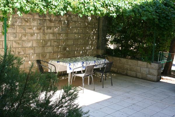 Apartments Marinović in Bol on Brač are located above the promenade (2nd row of houses) towards Zlatni Rat. The house is located 50m from the sea and the nearest beach. All apartments have air conditioning, TV, wifi, kitchen, bathroom. There is a gazebo with a fireplace in the yard. Ideal for families with children, due to the proximity of beaches and amenities (aquapark, playground, windsurfing, kitesurfing and diving schools...).