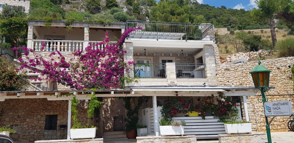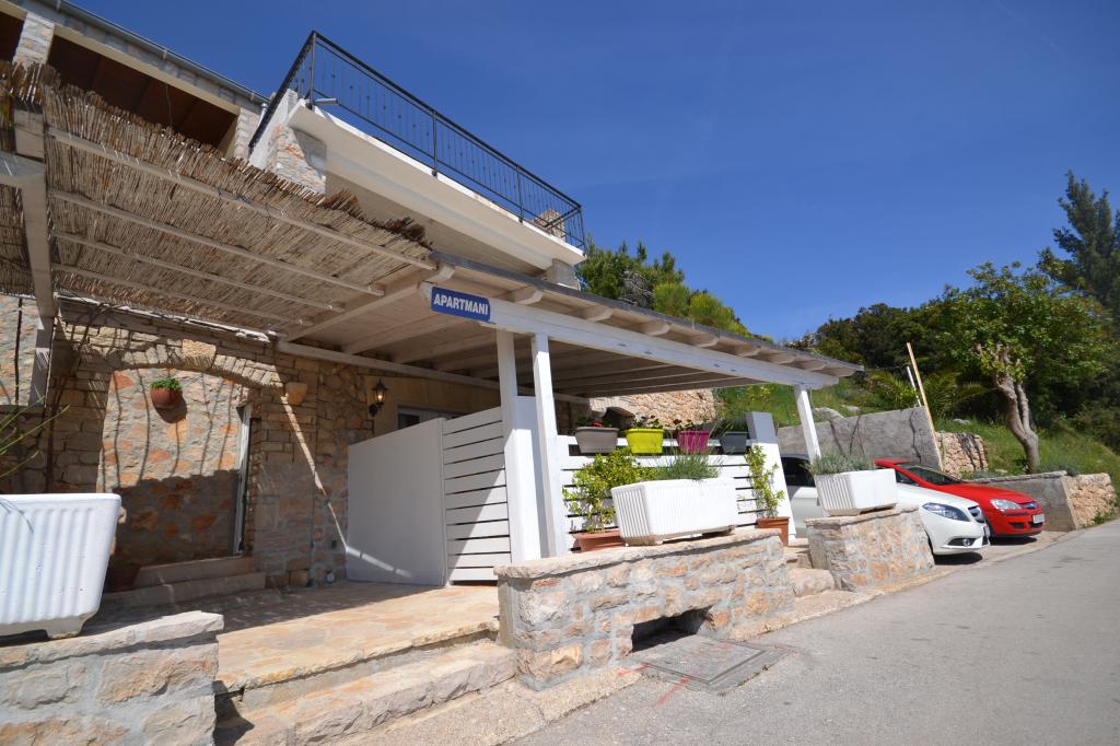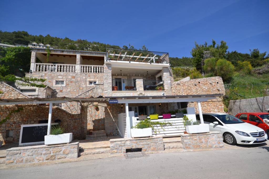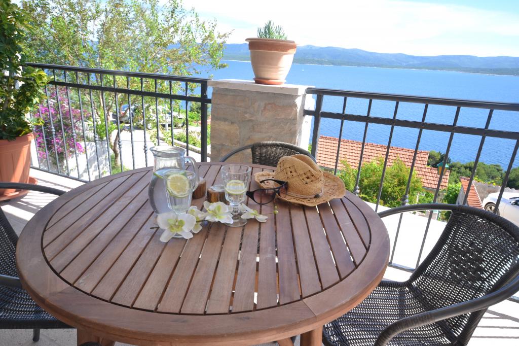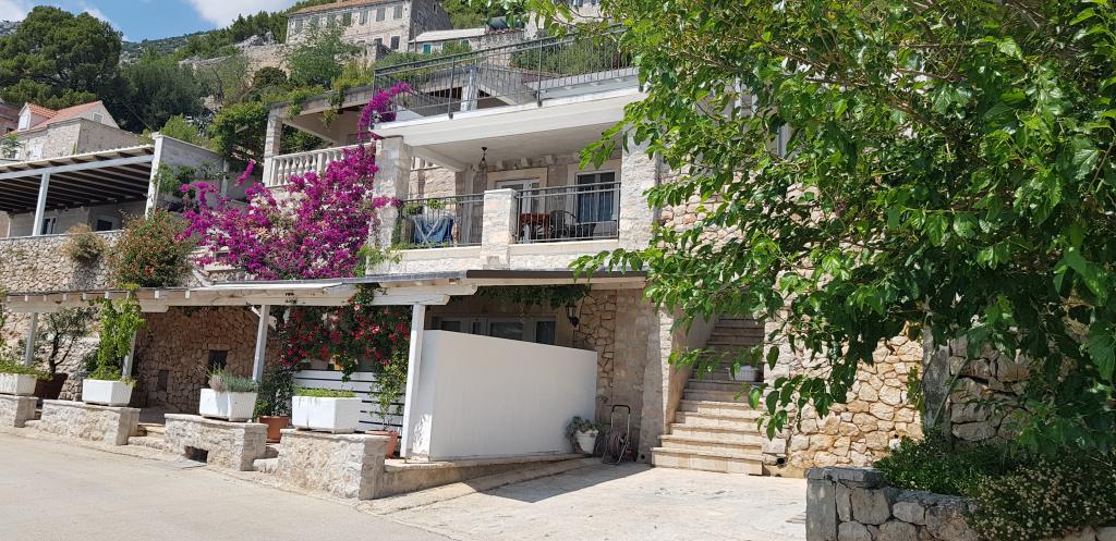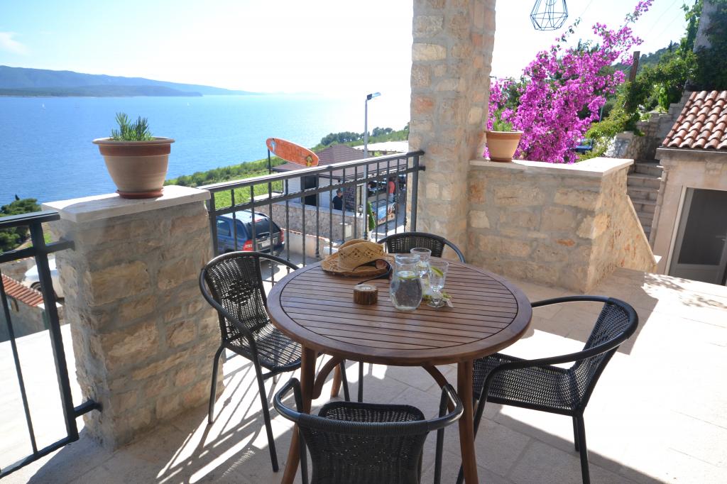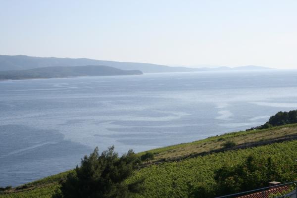 Fully furnished apartments in a small village five kilometers from Bol, with magnificent views of the Brač-Hvar channel, five minutes walk from the beautiful sandy beach in the shade of ancient pines.