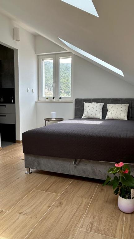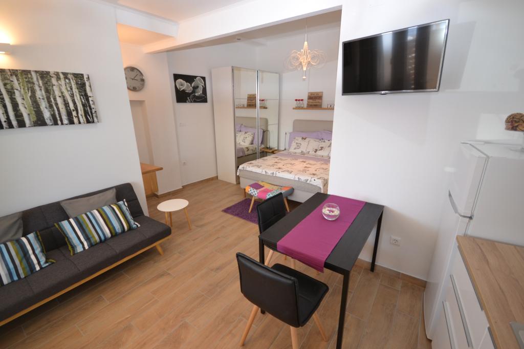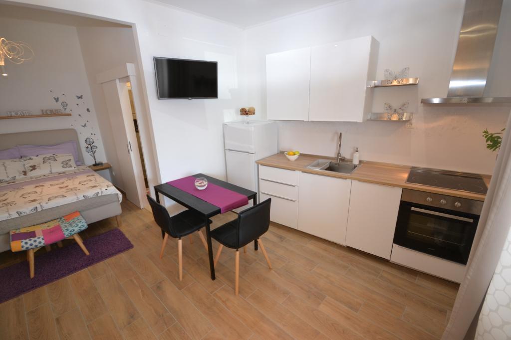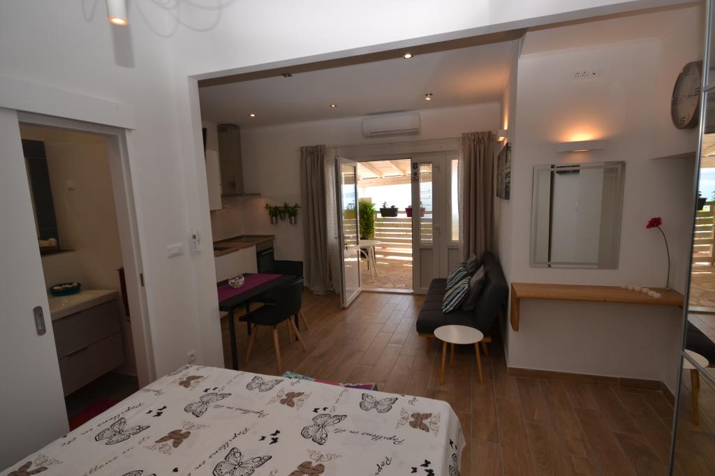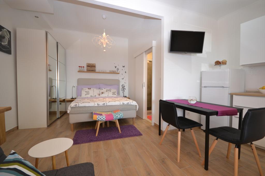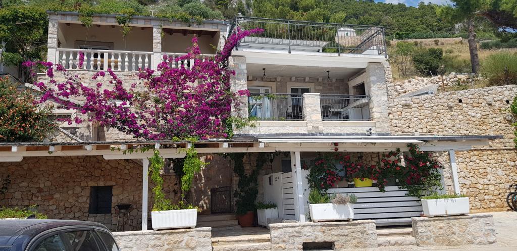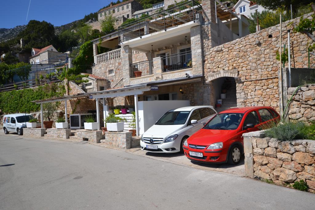Fully furnished apartments in a small village five kilometers from Bol, with magnificent views of the Brač-Hvar channel, five minutes walk from the beautiful sandy beach in the shade of ancient pines.