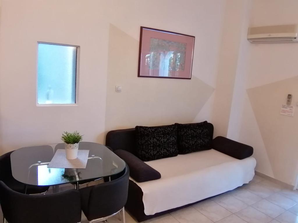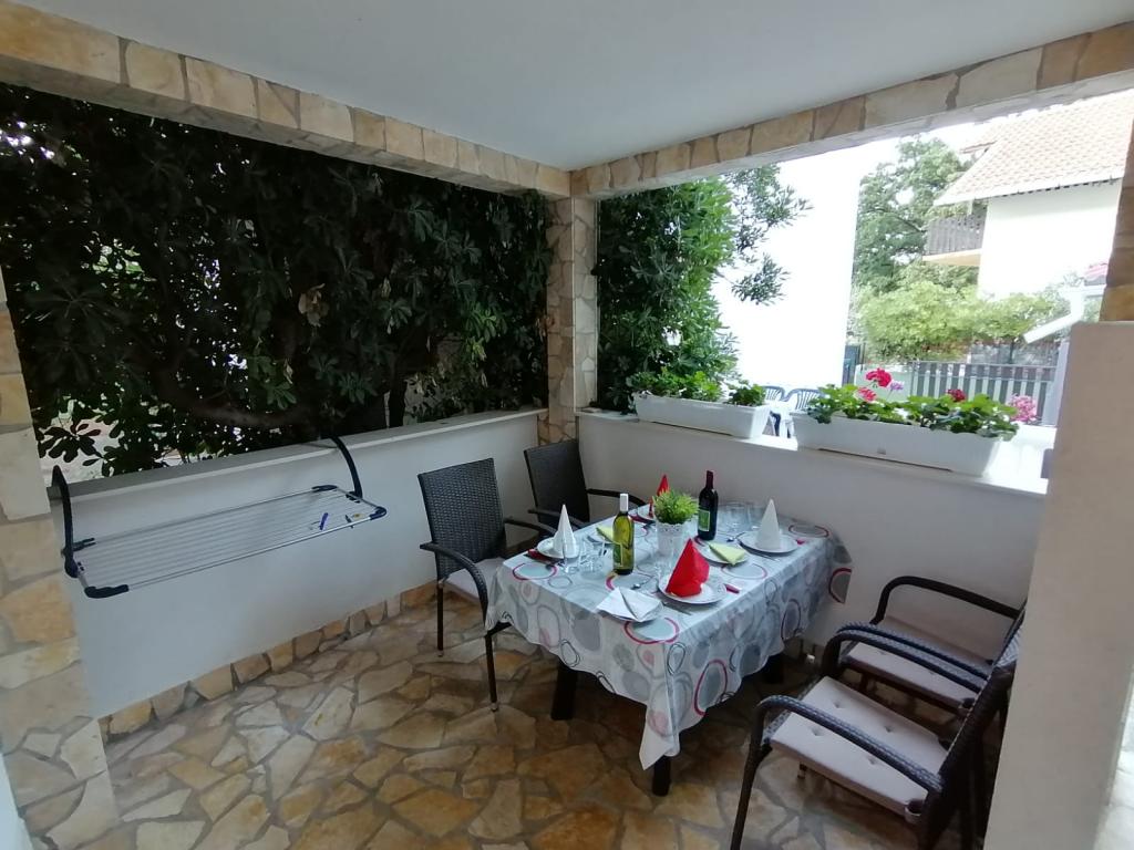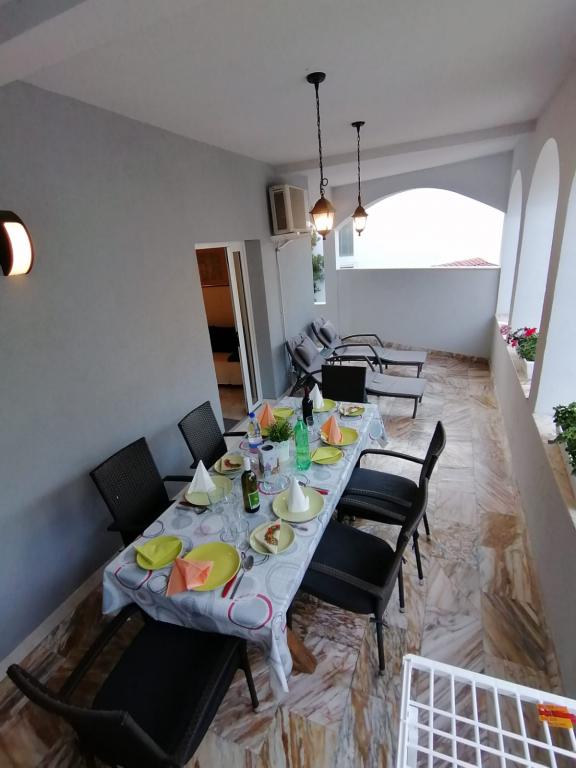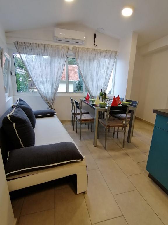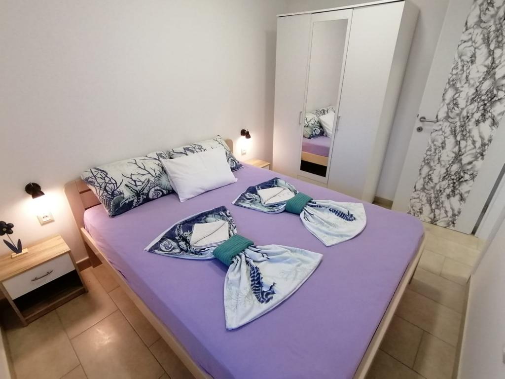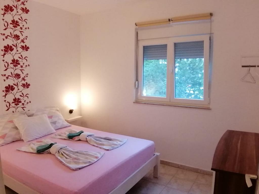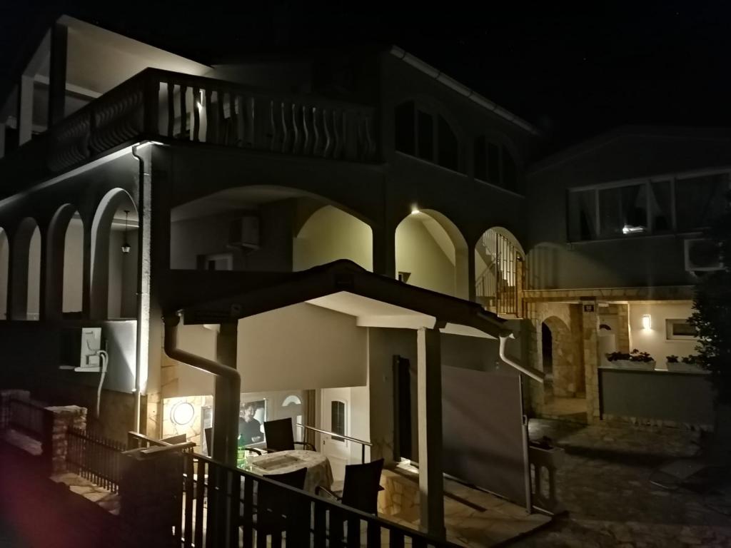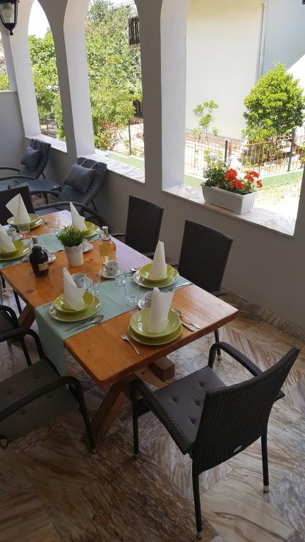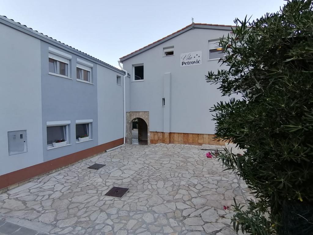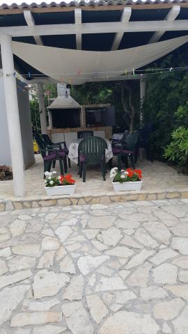 The apartments are located in the town of Bošana within the bay of Pag itself. They are equipped with modern furniture, each apartment has bedrooms, a living room, a kitchen, a bathroom and a terrace. Around the building itself there is a spacious yard lined with Benkovac stone, which gives it a special Mediterranean atmosphere. In the yard, there are two grills for use, as well as several sofas, and two showers for outdoor showering. The building itself is set back from the main road and is therefore safe for children and pets. There is also a parking space for cars.