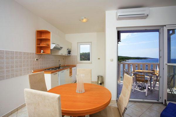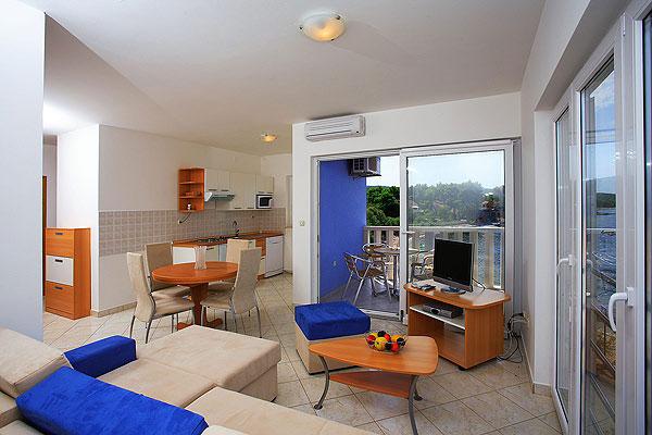 The size of the apartments ranges from 55-62 m². 17 apartments are 4+2, whereas 5 are 3+2. Each apartment consists of two bedrooms, a living room, kitchen, bathroom and a balcony with sea-view. In order to make your stay as comfortable as possible, we have equipped all the apartments with state-of-the-art appliances. Each apartment has a dishwasher, microwave oven, refrigerator, air conditioning, LCD television, satellite system, and telephone. The guests also have their own parking place in a private, guarded parking.