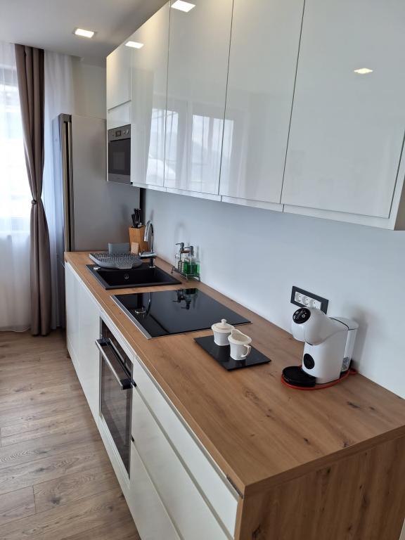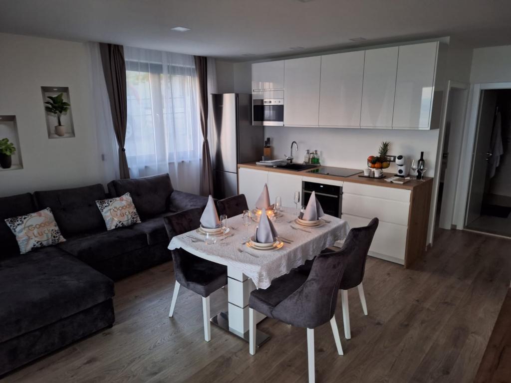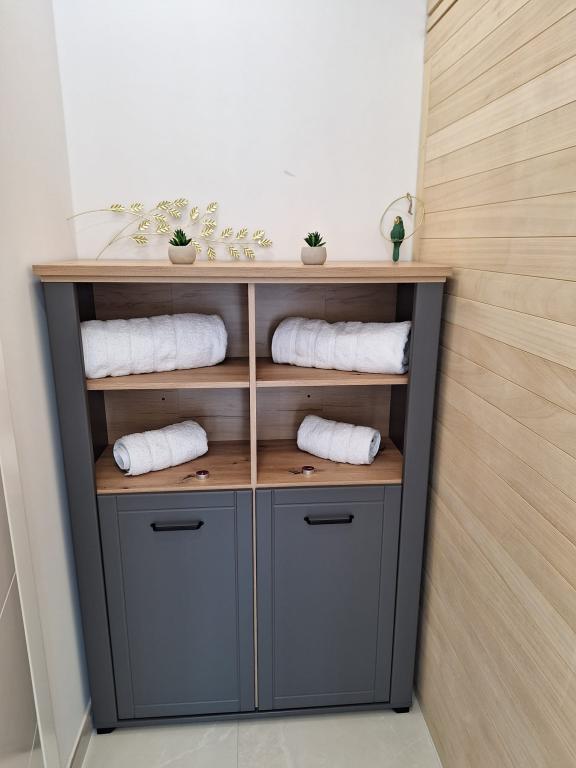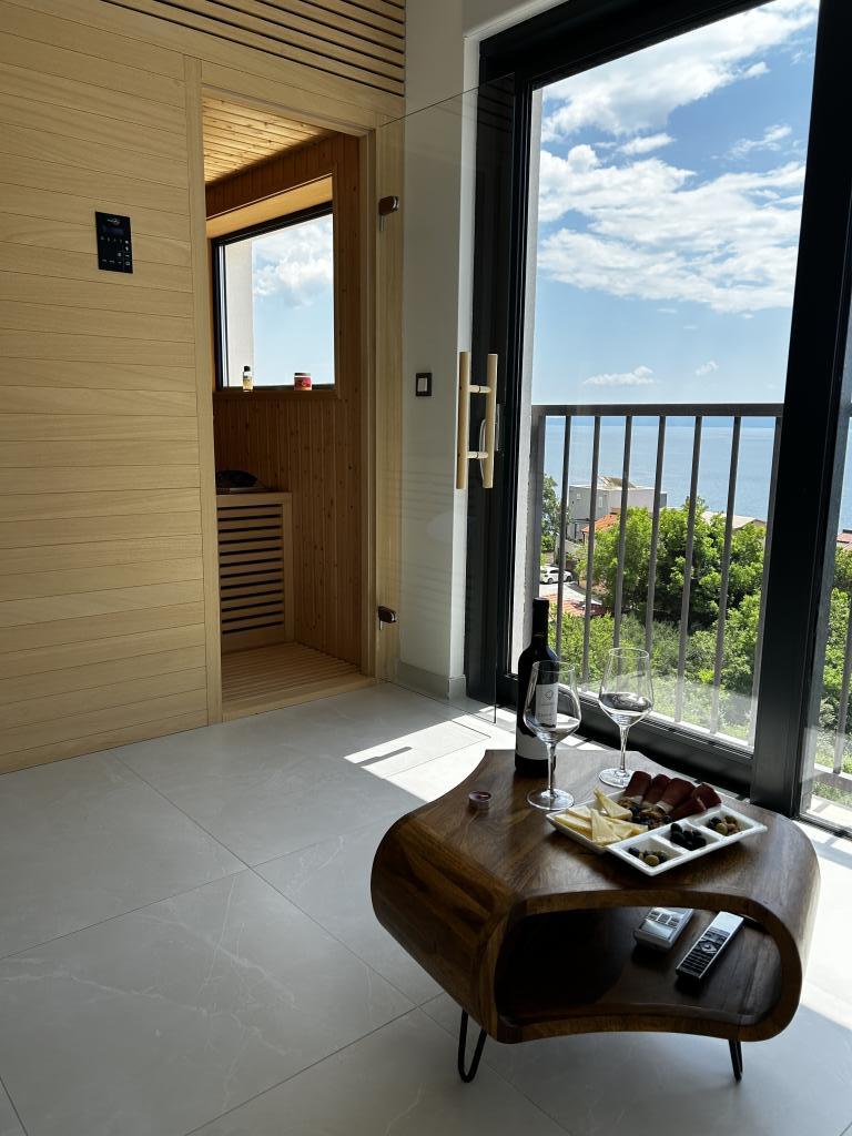 New, modernly equipped two-story apartment with sauna, hydromassage pool. The object is located in a family house, a 10-minute walk from the beach, the possibility of using the parking lot next to the beach. It consists of a bedroom, a bathroom, a living room with a kitchen, a large terrace with a hydromassage pool, on the second floor there is a sauna, a living room, a toilet and a shower.