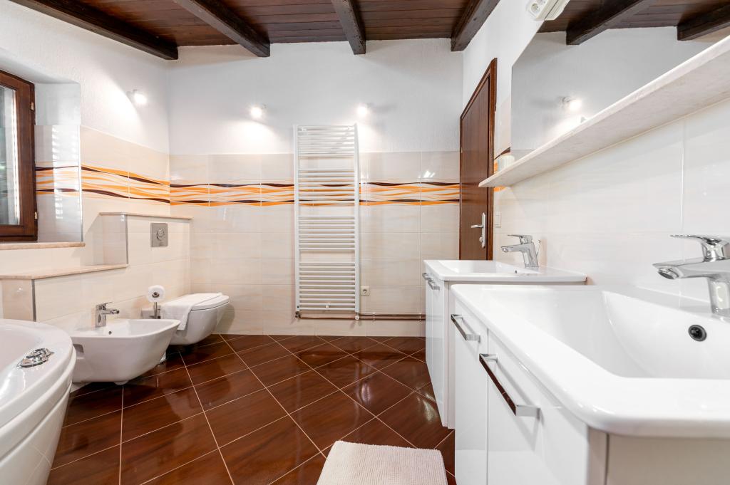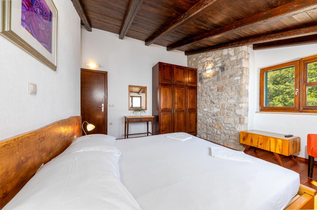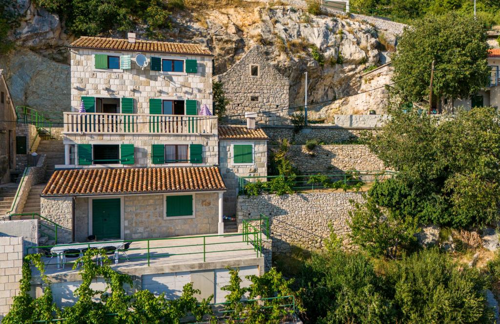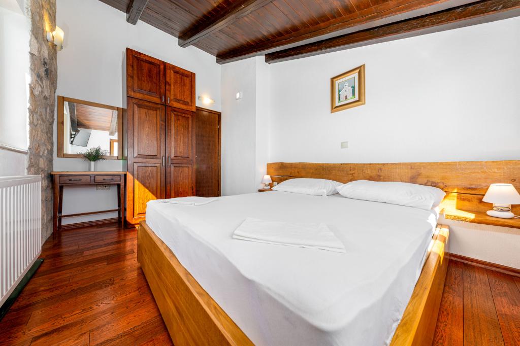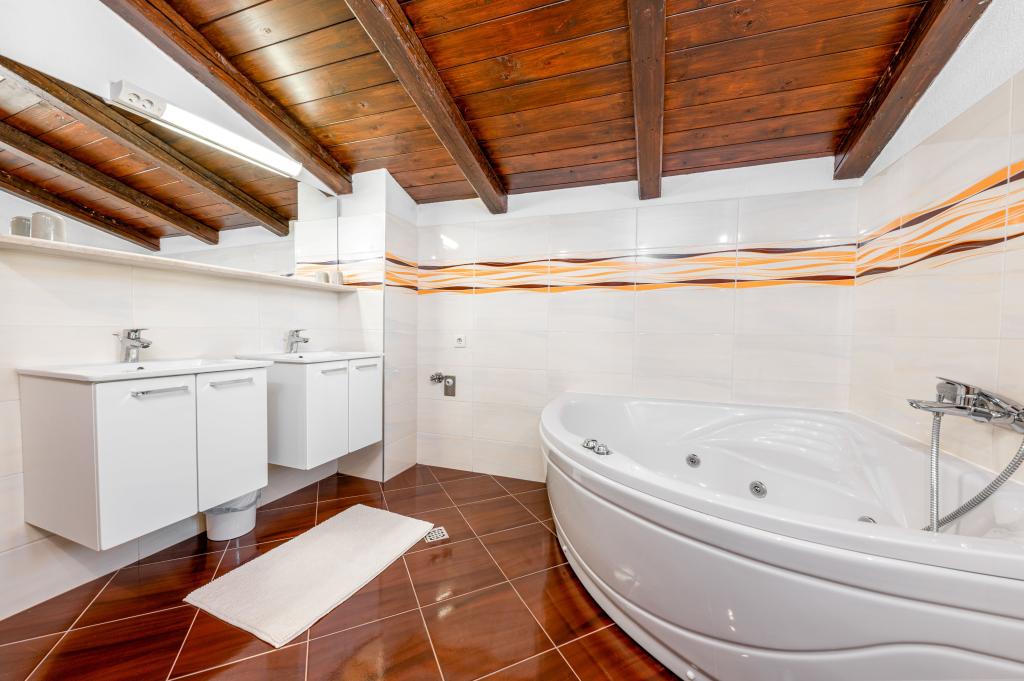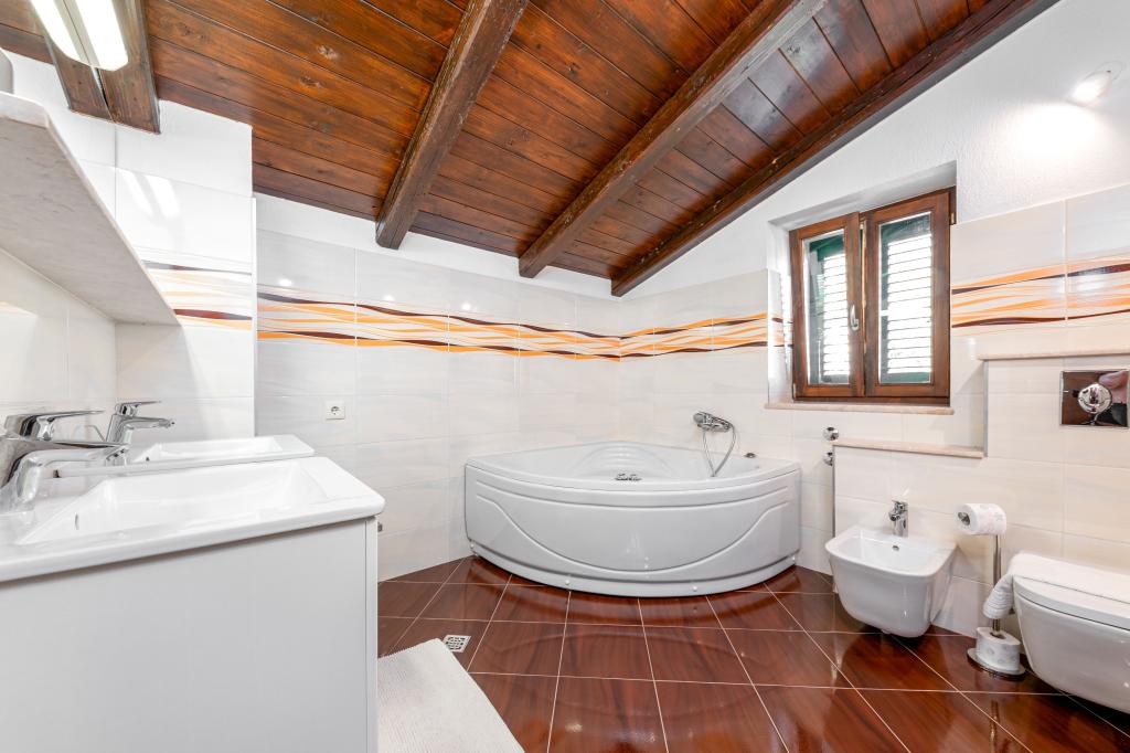 Welcome to our spacious and charming apartment located in a private house with a total of three apartments - an ideal choice for a peaceful and relaxing holiday in a true Dalmatian ambience. The 115 m² apartment offers everything you need for a pleasant stay. It consists of two comfortable bedrooms, a fully equipped kitchen connected to a spacious living room, two bathrooms (one of which has a hydromassage bathtub) and an additional separate toilet. Rustic decoration and carefully chosen details create a warm atmosphere and an authentic Dalmatian atmosphere. The house is located on a cascading terrain, and stairs lead to the shared swimming pool. The pool is located on a spacious terrace equipped with deck chairs and umbrellas, perfect for sunbathing and enjoying the view. Due to the stairs and the configuration of the terrain, the apartment is not suitable for people with disabilities or people with reduced mobility. Private parking is available right next to the house (which is a great advantage in the summer months). We look forward to your arrival!