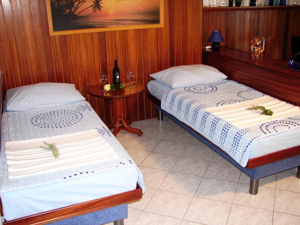 Located in a quiet location, just 10 meters from the sea there are apartments Bikin. All apartments offered have all you need for a comfortable stay: fully equipped kitchen, satellite TV, safe, free air conditioning, free Wi-Fi internet. Breakfast is served only in the room. Garden with barbecue is available. Parking is free nearby. The nearest supermarket is 100 meters away, a restaurant with a kitchen mediteranskm 400m. Washing machine and iron are available at extra cost.