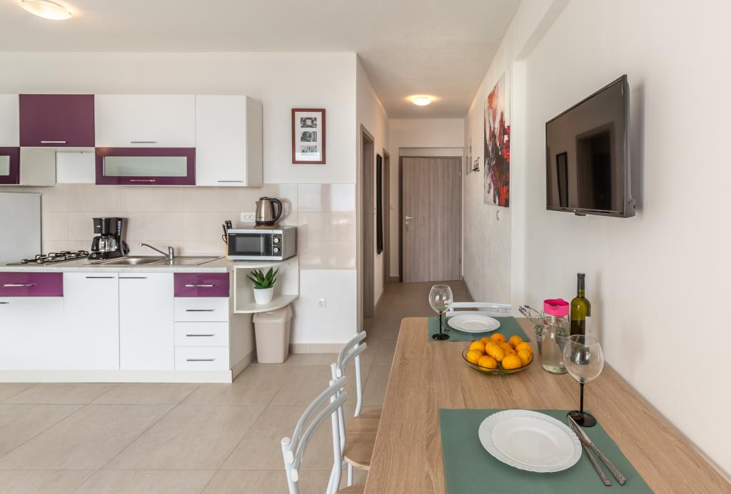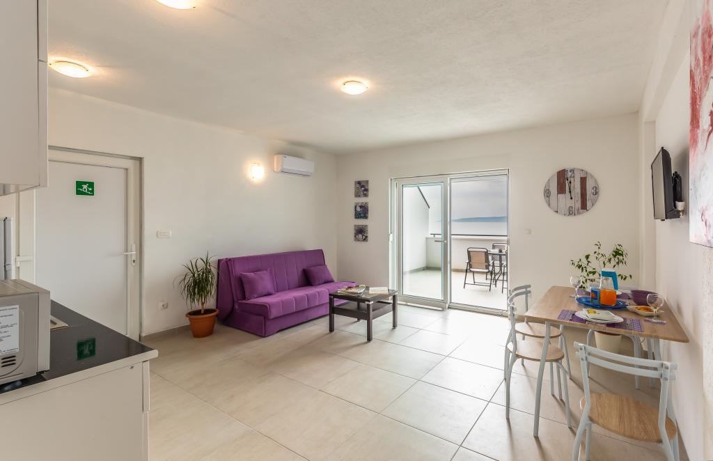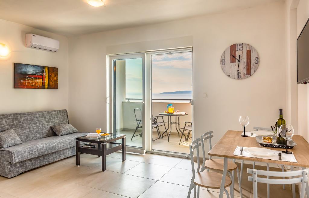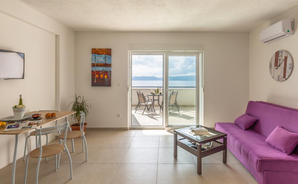 Apartments Eol are located in Brela, in the Split-Dalmatia County, next to the beaches of Jakiruša and Podcrkavlje. Free Wi-Fi and private parking are available to guests. All apartments have an open view of the sea, which is 30 m away as the crow flies, air conditioning, a private bathroom, a flat-screen TV, a wardrobe, a living room, an equipped kitchen, a bedroom and a large terrace with a view of the sea. The beach is 70-80 m from the property, and the beach for dogs (Stomarica) is approx. 800 m from the property. The building was built in 2019, since then it has been rented out for tourists and is located in an extremely quiet part of Brela near Vruja beach. In the immediate vicinity of Brela is the Biokovo Nature Park with a Skywalk promenade that offers a panoramic view of all the central Dalmatian islands. Nearby is the Cetina river with rafting, canyoning, zipline and picnic areas with quality restaurants.