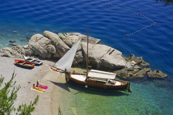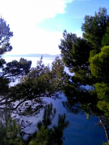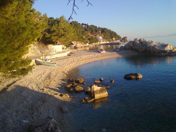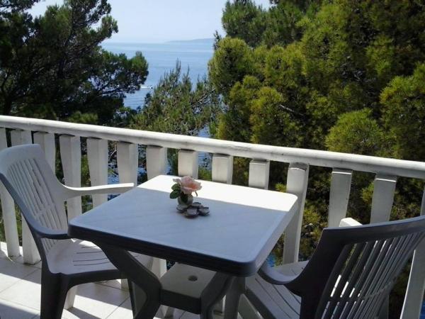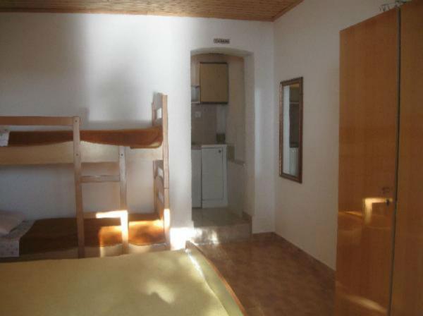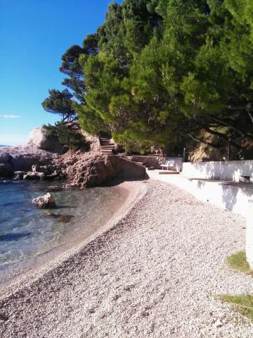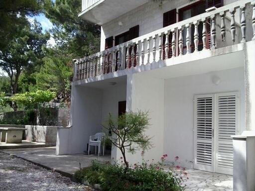 Studio apartment is located in a quiet bay Jakiruša away from the beach less than a minute walk, 10m above sea level, surrounded by a thick pine forest in untouched nature with beautiful views of the islands of Brac and Hvar. At the nearby beach you can find your ideal place to relax, enjoy the sound of the waves and the beautiful Mediterranean climate. Studio apartment is located on the ground floor on about 30 m2 of the interior and exterior private terrace. The terrace that belongs to the maritime domain with a view of the sea, beaches and islands. The studio consists of a room with a bed and bunk beds, bathroom and kitchenette with stove and refrigerator and freezer. Towels, toilet paper, kitchen towels, dishwashing liquid and linen are included. Parking, tourist tax and the use of Wi-Fi services are included. Room and Room 1 are placed on the second floor, two rooms have a separate bathroom and a balcony with a view of the sea and islands