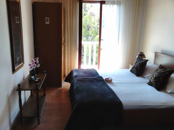 Residential tax is included in price.Room and Room 1 are air-conditioned and have the ability to use common kitchen that you can see in the pictures. The kitchen has appliances and utensils that you can use whenever you need a kitchen to share with our families and tourists who are staying in the room next to yours. Each room has its own refrigerator. You can eat on the balcony, in the kitchen or on the large terrace in front of the house. If you want to eat in the restaurant, 100 meters away from us there is a very nice restaurant with reasonable prices. Along the promenade that stretches from the beach below our house to the center, there are several nice restaurants offering local seafood delicacies and other dishes. In addition to the restaurant there are also local beach bars that provide a real maritime atmosphere.