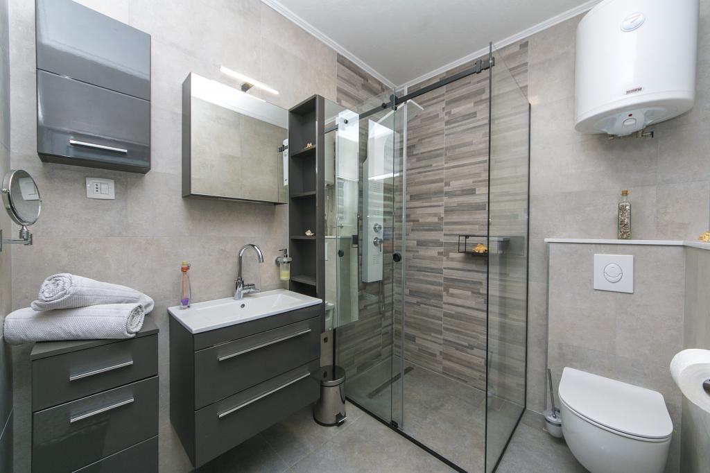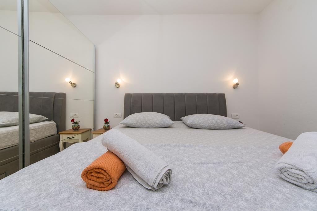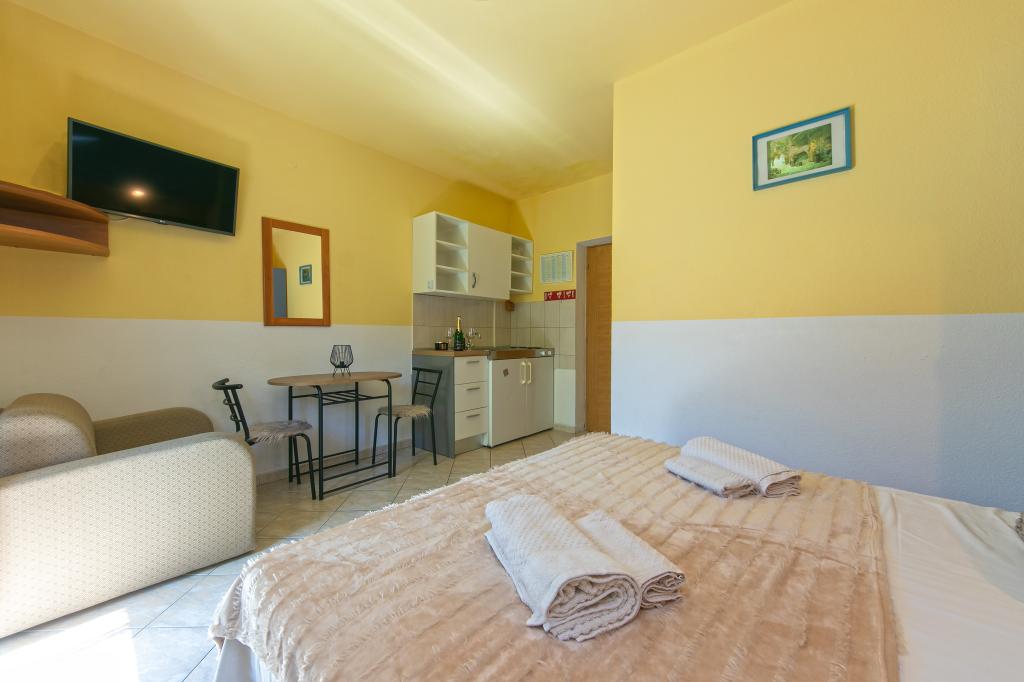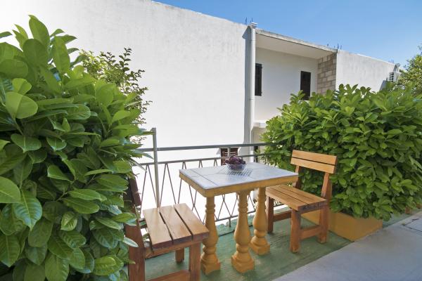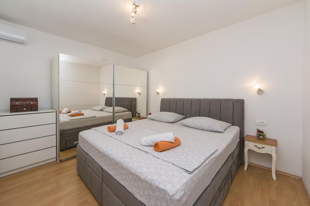 Apartments Hrvoje are located in an elevated position in the quiet part of Stomarica Street. Distance from the pebble beach is about 3 min. walk or 150 m. On one side of the house there is a view of the sea and the other has a view of the mountain Biokovo. The Jelčić family offer is quality and the guests can fully relax in the apartments and spend an unforgettable vacation. The apartments satisfy all the guests who want to spend a pleasant vacation. The accommodation offer includes apartments equipped with kitchen, bedroom, air conditioning, satellite TV, bathroom and balconies. Behind the house there is a garden terrace with tables where guests can relax while enjoying the peaceful atmosphere overlooking the sea. Also available is the use of an outdoor grill, but a friendly lady. Jelcic will be happy to help them. Parking is secured.