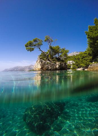 Fully equipped, modern apartment in Brela. First row by the sea. Direct access to the beach via private stairs. Beautiful view of the sea. Quiet part of Brel. On the beach, there is a shower, a room for storing mattresses, reels and other beach accessories. 10 minutes from the center. Pebble beach of exceptional cleanliness. The apartment has a balcony and a covered terrace. Private parking is located behind the house. The market is located 20m from the house. Internet wi-fi. More restaurants nearby.