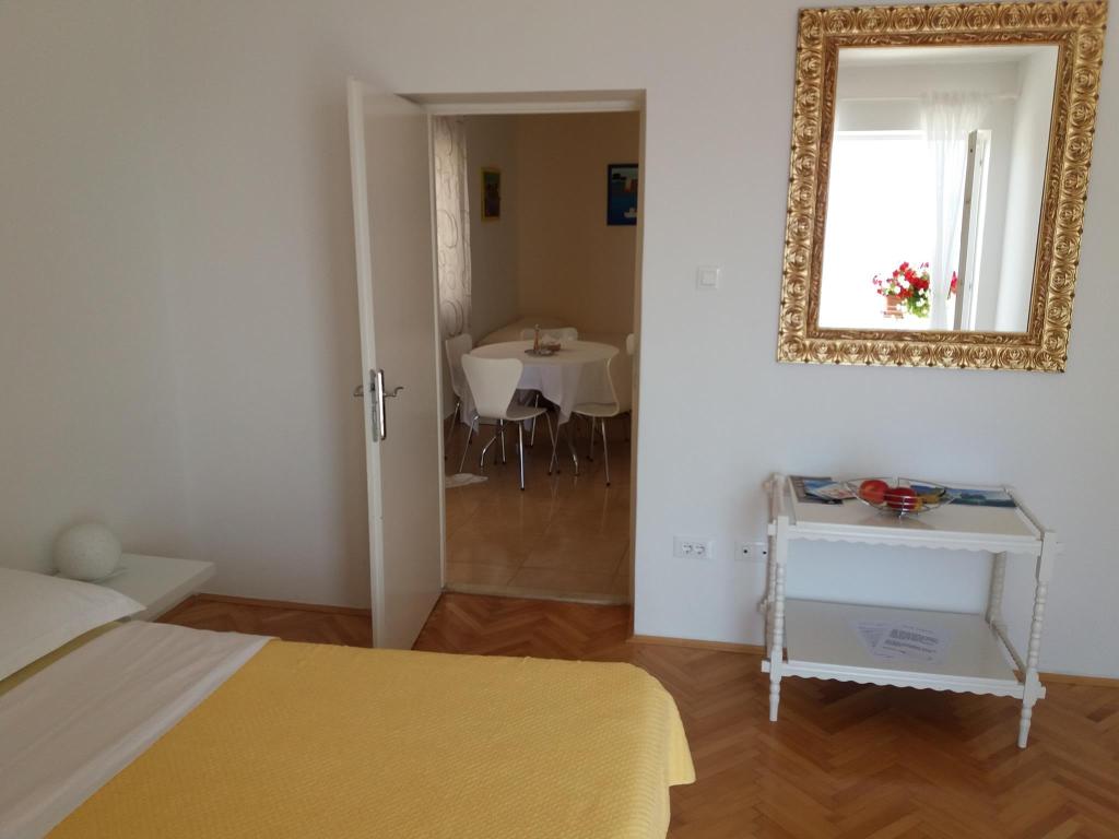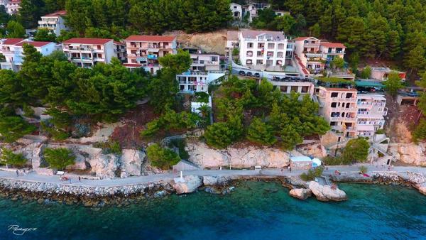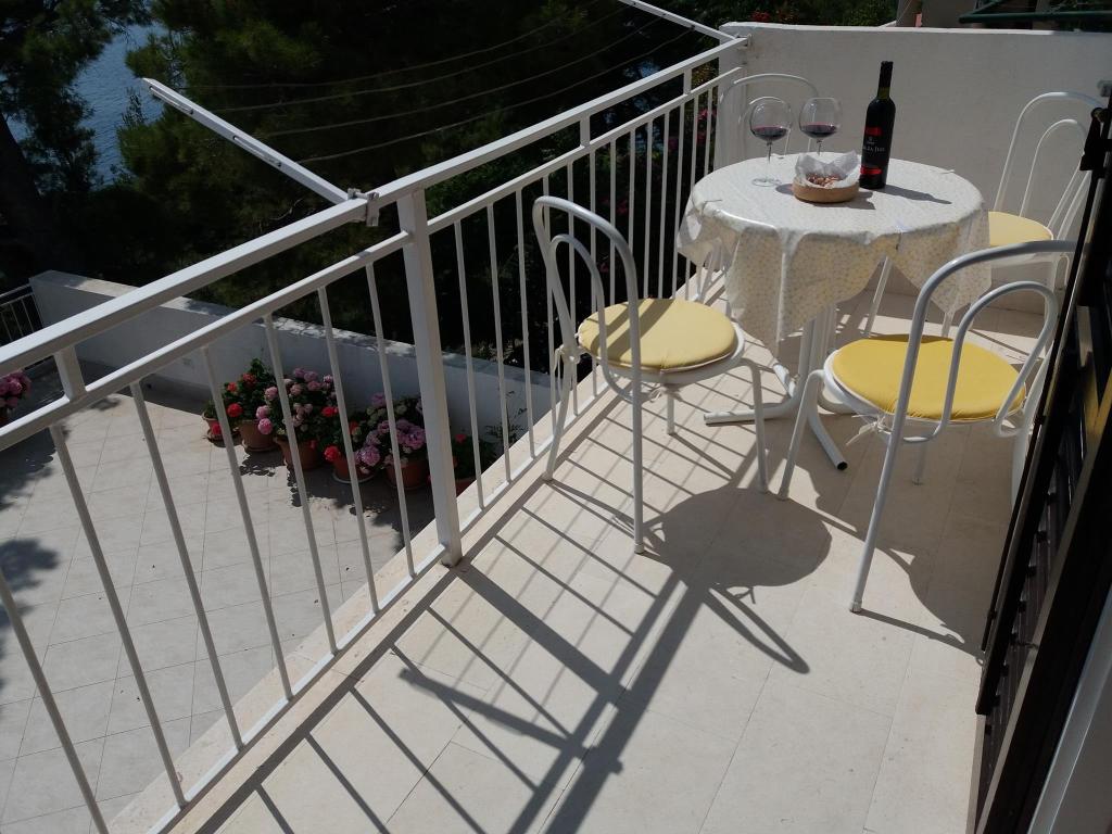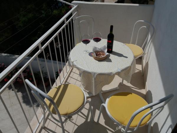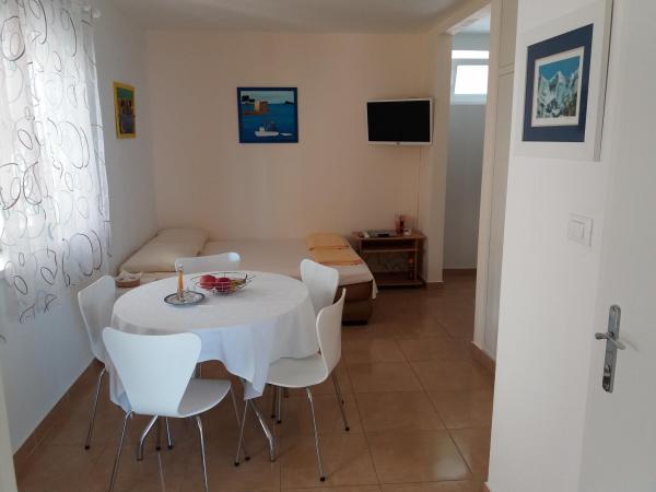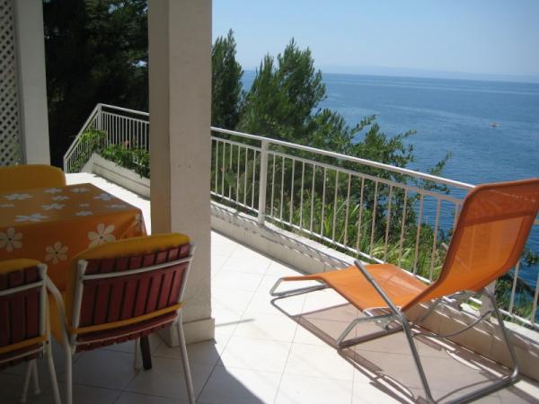 Apartments are located in a very beautiful place. With a huge balcony offering splendid views of the sea and islands. Silence allows you to enjoy the rest. Rooms are cozy and very bright, everything is done for your comfort. The apartment has everything for a holiday by the sea: umbrellas, mats, air mattresses, flippers and mask for diving, children\'s inflatable toys, chairs. Near apartments there is a restaurant \"Mediteran\" with Croatian cuisine. Delicious! This apartment is all set for a comfortable and memorable stay. Enjoy! Special thanks to wonderful hosts: Lenka, Edita and Zvonko!