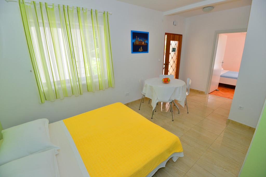Super location and great landlady Mrs. Edita and her mom, who make great cakes. The apartment has stunning sea views and a large covered patio in the shade, and if you want to have the sun on the balcony. The apartment is newly renovated, inside you have all what you need on holiday. Children enjoyed because it really enough space to play on the terrace and in the apartment. Also nearby is full of beautiful beaches. It is nice that all the toys, and beach you can let the beach in a separate room. The shop is quite close. In the evening you can walk along the coast. We enjoy and next year will be refunded.