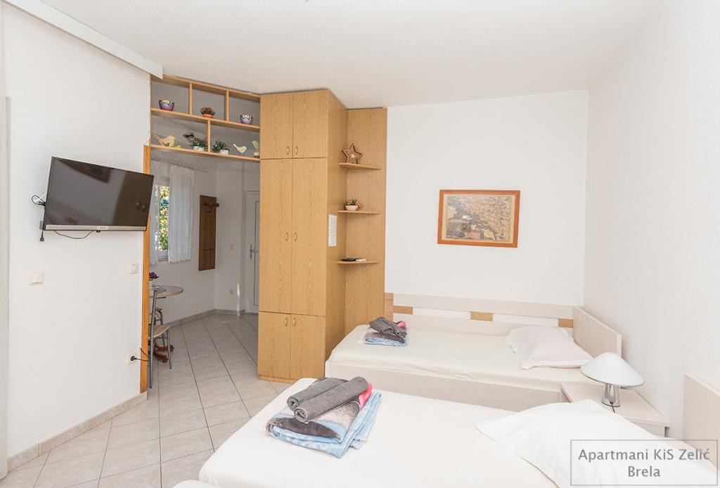 Apartments KiS Zelić are located in a quiet location, only 100 m from the sea and beautiful pebble beaches. On one side there is a beautiful view of the sea and islands, and on the other of the mountain Biokovo. The apartments offer everything you need for a pleasant stay. The rooms are equipped with complete bed linen and towels. Towels are changed every 3 days, and bed linen every 7 days. The kitchen with dining room is equipped with a stove, refrigerator, kettle, complete dishes and cutlery. Each apartment has a terrace or balcony, satellite TV, WiFi and parking. The nearest market is 200 m away, a restaurant with Mediterranean cuisine 200 m away.