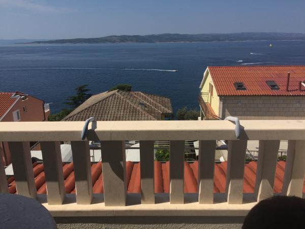 The apartment is just like in the photo. The fridge cools well, the air conditioning works, the view from the balcony of the sea and the island of Brac. The hosts were very nice and gave us a whole bottle of rakija when we left. It's a 15-minute walk to Baśka Voda and the same time to Kamień Brela. The only minus for me is the stairs to the beach. Showers on the beach are free. I would highly recommend.
