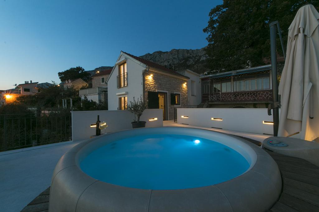 Old Village Brela is situated in a typical Dalmation surrounding, far away from the city traffic and the crowds. Old Village is ideal for relaxation and escape from the hustle and bustle, and has five modern apartments. On the terrace with two jacuzzi and lounge our guests can relax and enjoy the beautiful view of the sea and the magnificent mountain Biokovo. All apartments have air conditioning, satellite TV, WiFi. The nearset beach can be reached in 400 m, Punta Rata Beach in 1 km and Brela centre in 2 km.