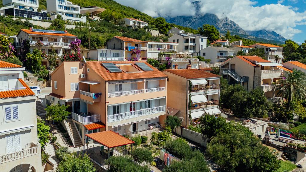 Residential tax is included in price.I recommend apartment A5+1. We arrived as a family of five, with three teenage children. The accommodation, communication with the owners, and the appearance and cleanliness of the apartment were impeccable. The kitchenette could have been a bit larger (the worktop), but everything else was perfect. The owner, Milan, was incredibly friendly and helpful. After climbing dozens of stairs, we reached the beach, but that's the charm of Brela. Shops and restaurants are nearby.