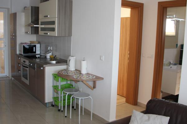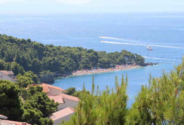 Fully equipped and modern new apartments in Brela. Kitchens are equipped, kettle, toaster, microwave oven, baking dish, and dishwasher. Proximity to the sea. The facility is located 5 minutes to the shops, 10 minutes to the beach, about 200 steps, 20-minute walk along the shore to the center. Just 5 kilometers from Makarska and major shopping centers. We welcome guests with a welcome drink included in the price, as well as the tourist tax. If the stay lasts more than 7 days changing the bed linen and towels, and clean apartment if the customer wants. Reservation charge 20% of the total. Arrival time after 13 hours and check out up to 12 hours.