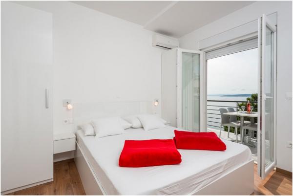 Villa Mila is located in a quiet part of Brela - Stomarica, 50m from the clean, sandy beaches. The property offers the use of an outdoor swimming pool, barbecue, private parking. The apartments are modern, air-conditioned, have a fully equipped kitchen, bathroom with shower, LED satellite TV, Wi-Fi, and a balcony overlooking the sea and islands. Welcome!