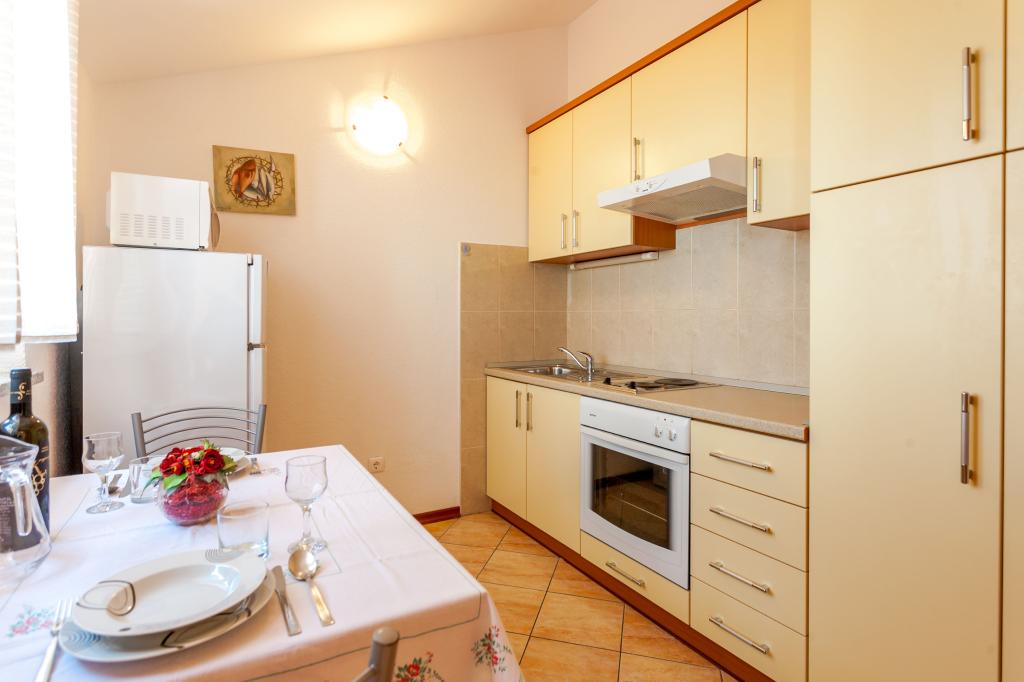 Residential tax is included in price.We offer 6 fully equipped apartments and 1 room. All accommodation units are air-conditioned (living room), have LCD TV and free internet access (WiFi). The apartments are modernly furnished, in all apartments there is a fully equipped kitchen with utensils for eating and cooking, a kettle, a microwave oven, a table with seats and furniture for the balcony or terrace. The room consists of two beds with the possibility of an additional bed. It has a fridge and a kettle. It faces north, without a balcony. Bed linen is changed every 7 days, and towels 2 times a week. Welcome drink and final cleaning are included in the price. Parking is provided in front of the Villa.