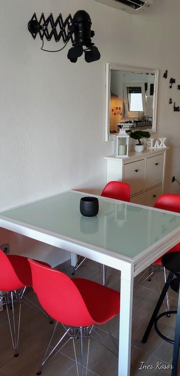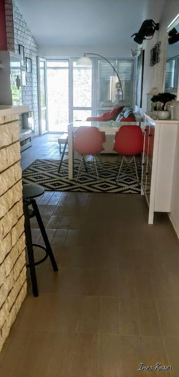 Accommodation unit size is 70 m2. It consists of two bedrooms with double beds in each, living room with sofa bed, modern equipped kitchen, bathroom and terrace with jacuzzi. The building is modernly decorated with all the necessary appliances, and is located in a quiet environment. The center of the small village of Slimena takes about 100 meters. In the center there is a supermarket for food, drink and other necessities of the guest. A kilometer away, there is a restaurant serving local and traditional food. The Cetina River is also a kilometer away with beautiful scenery, perfect for body and soul. Swimming is possible in Cetina and rafting and zip line is an indispensable treat for adrenaline lovers. Visit us!