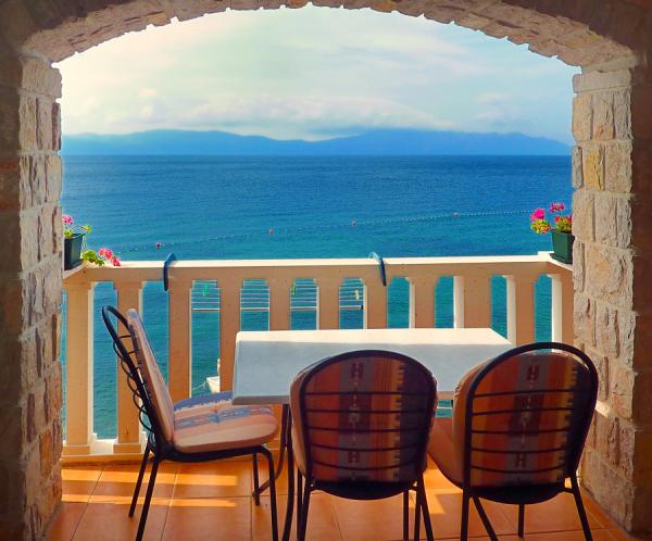 Fully furnished apartments in a stone house, traditional building. The apartments are situated right on the beach, 5 minutes from the town center, shops and restaurants. Each apartment has a private terrace overlooking the sea. The total number of apartments is four, of which two studios 3 +0, 3 +0 one suite and one apartment 2 +2.