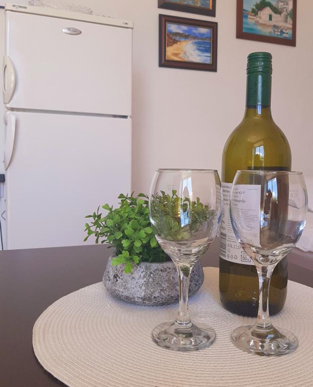 I recommend the apartment with all my heart this place and these people simply delighted us. Breathtaking views from the window, warm welcome by the hosts with wine and brandy. The place is just perfect if you like peace and quiet, and at the same time proximity to a cafe or ice cream. spotlessly clean spacious rooms, the atmosphere at home. Not to mention the delicious fish we received from the owner as a farewell .... simply yummy. We are already counting down to next year ..... we will definitely be back.