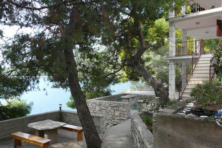 We are located in a small bay near the larger village, with clear and clean water. The apartments are located in a pine forest near the sea. The property has a large garden and the accompanying beach. The balconies are large areas, spacious. From the balcony you can see the seabed. In agreement with the owner, we offer a short boat ride to nearby uninhabited bays.