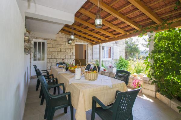 Very spacious apartment with 3 bathrooms and a huge terrace where we were 13 at once for the table. Through the window of the bedroom we listened to the cicadas throughout the day, and at night the noise of the sea, which is quite close. The owners are very friendly, helpful and always available. Visit the small harbor of Brno, as well as Blato, Smokvice and the beautiful Vela Luka. Welcome to the locals and thank you!