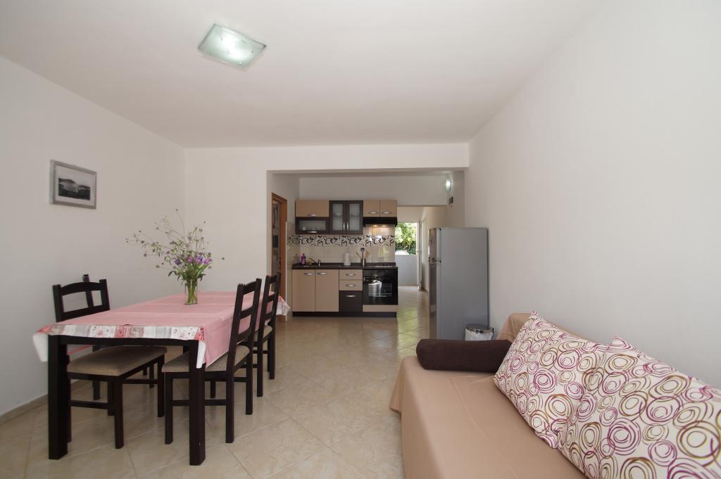 Very good place to rest. In apartments were my family and friends, and we rented all three apartments. We were very pleased with the service and hosts. When we arrived at the apartment the hosts have give us a welcome drink and offered tasty cake. In each apartment we were greeted by a liter of wine and juice. Later we bought from the hosts very good wine and brandy and very delicious homemade marmalade made of figs. We were in the apartment at the end of the season, in early September so there was no crowd on the beach, in restaurants, in shops ... Apartments are close to the forest and so peaceful and quiet, and when you sleep from some rooms you can hear the sea. Apartments are fully equipped, clean and tidy. In large apartment for 8 persons each room has its own bathroom, which is great. The hosts have a couple of times prepared a very tasty dinner. The beach and the sea is close to apartments, so we often went to the beach and apartments. The sea is clean, just below the house, in the beginning we had some problems because there are no stairs to get in and out of the sea, but we quickly mastered the technique. We toured the entire island, we are particularly delighted the town of Korcula. Korcula town is beautiful but also quite expensive. At the end of our holiday hosts have gave each family a small gift, small bottle of brandy and lavender, super souvenir:) This is very good place for holiday!!!
