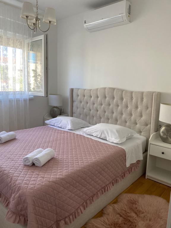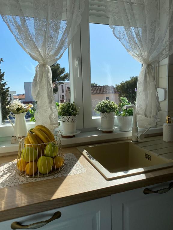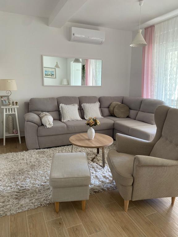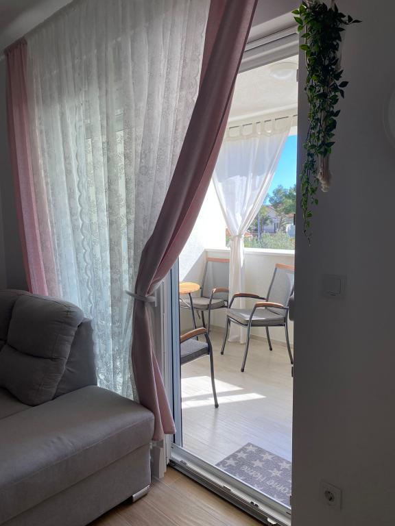Enjoy your vacation in Brodarica near Sibenik, in this newly furnished and decorated apartment, located on the first floor of a building of 5 residential units, only 100m. from the sea and the beach. The apartment has two bedrooms with double bed, and also have an extra bed on the sofa in the living room for one person. It can accommodate 5 people. If you are traveling with small children, a baby cot is available on request. The apartment is equipped with SAT-TV in the living room, air-conditioned in the living room as well as in the rooms, Wi-Fi (WLan) internet connection and washing machine. The kitchen has utensils and dishes for preparing and serving food, a stove, a refrigerator with a freezer compartment, and a dishwasher. A hairdryer is available in the bathroom with shower. The apartment has its own balcony with a covered terrace of 10m2. Bed linen, towels and tea towels are waiting for you, fresh are delivered once a week. There is one parking space available for apartment guests.