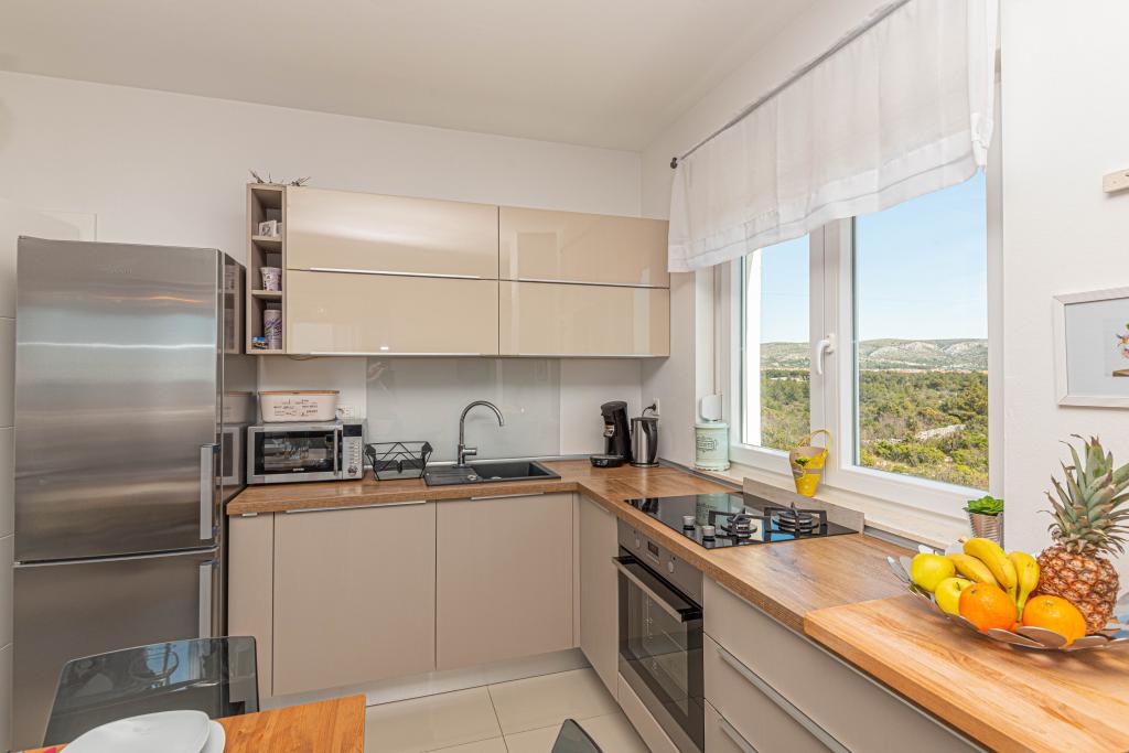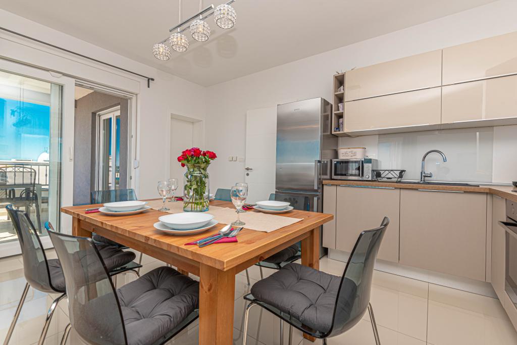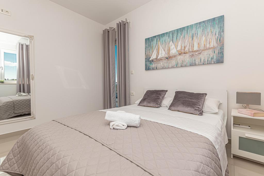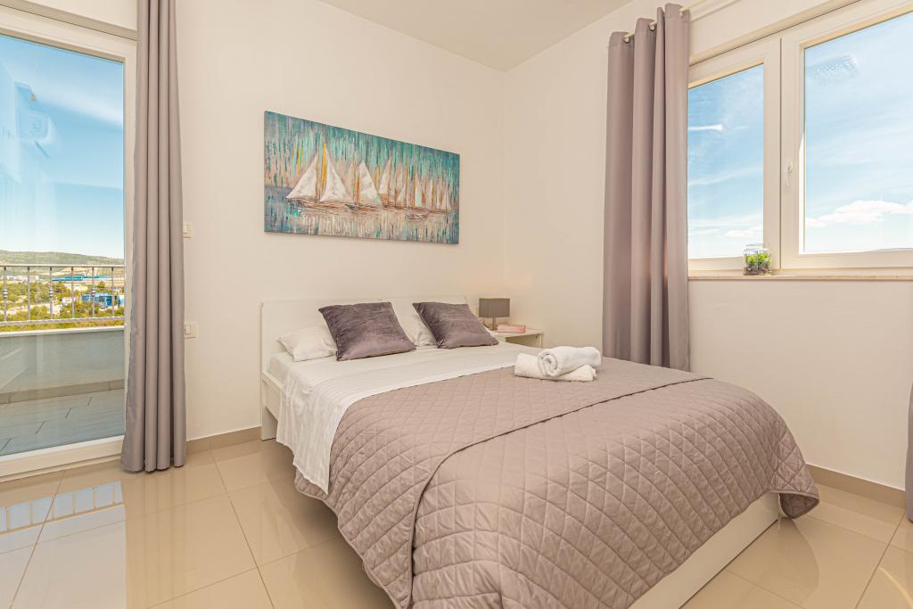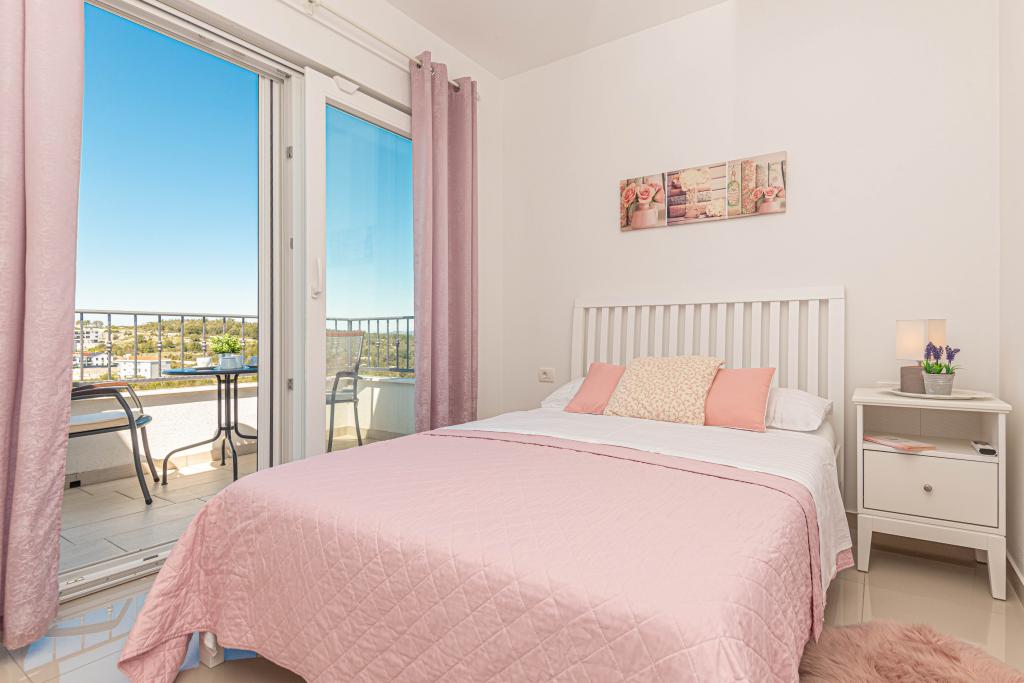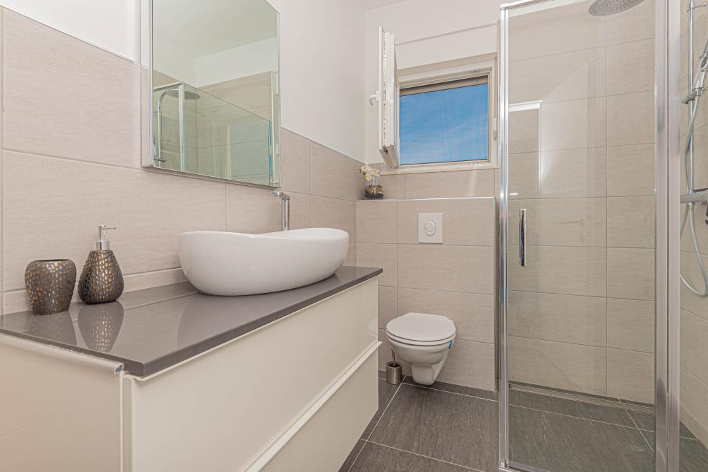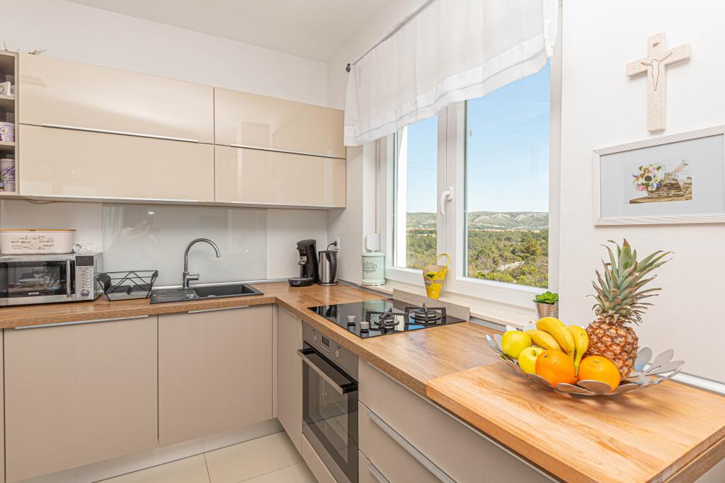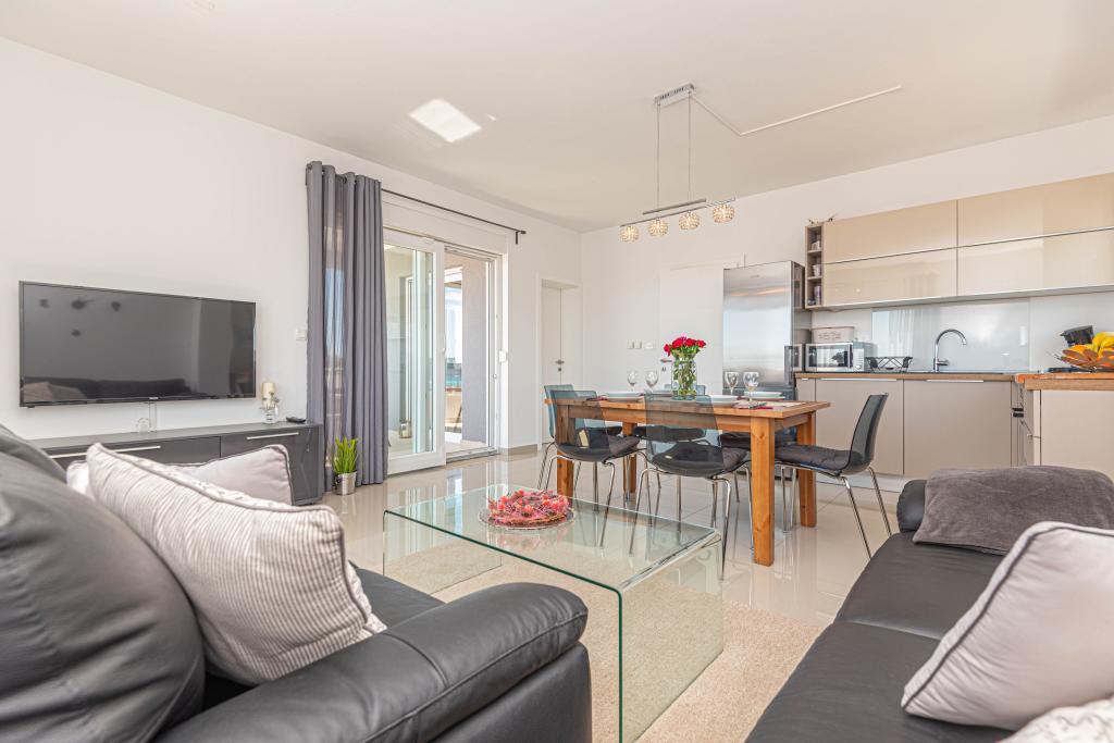 This modern accommodation is perfect for an unforgettable family vacation with a wonderful view of the archipelago and a unique sunset. Brand new apartment with terrace and sea view includes 3 bedrooms, living room, flat screen TV, equipped kitchen and 2 bathrooms with shower. Towels and bed linen are included in the apartment. It is located 500m from the beach and 2 km from the Solaris aqua park and 3 km from Šibenik. There are shops, pizzerias and top restaurants nearby. Parking is private and free, as is the WIFI network. The nearest airport is Split Airport, 55 km away. The apartment is fully air-conditioned. A large terrace with a table and chairs for enjoying the evening hours in a very quiet part of Brodarica.