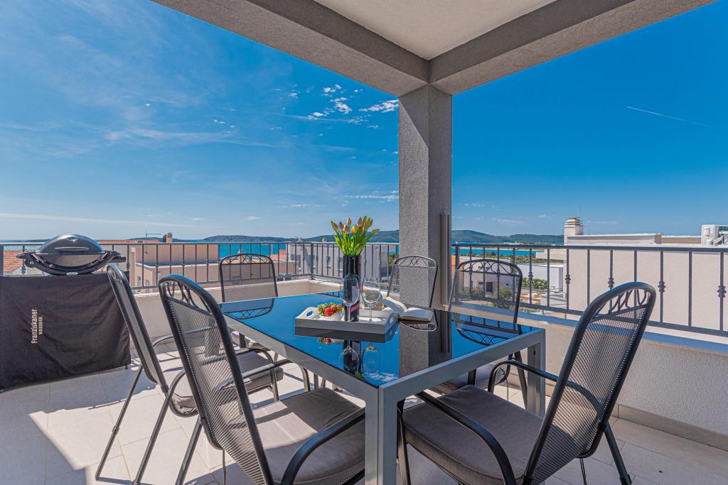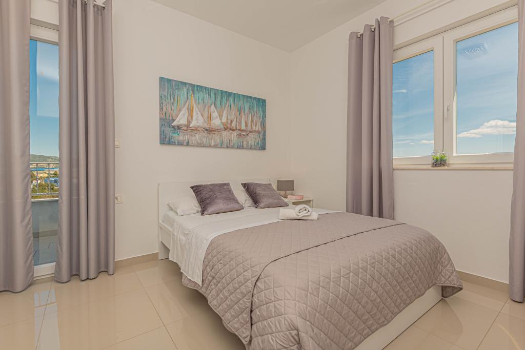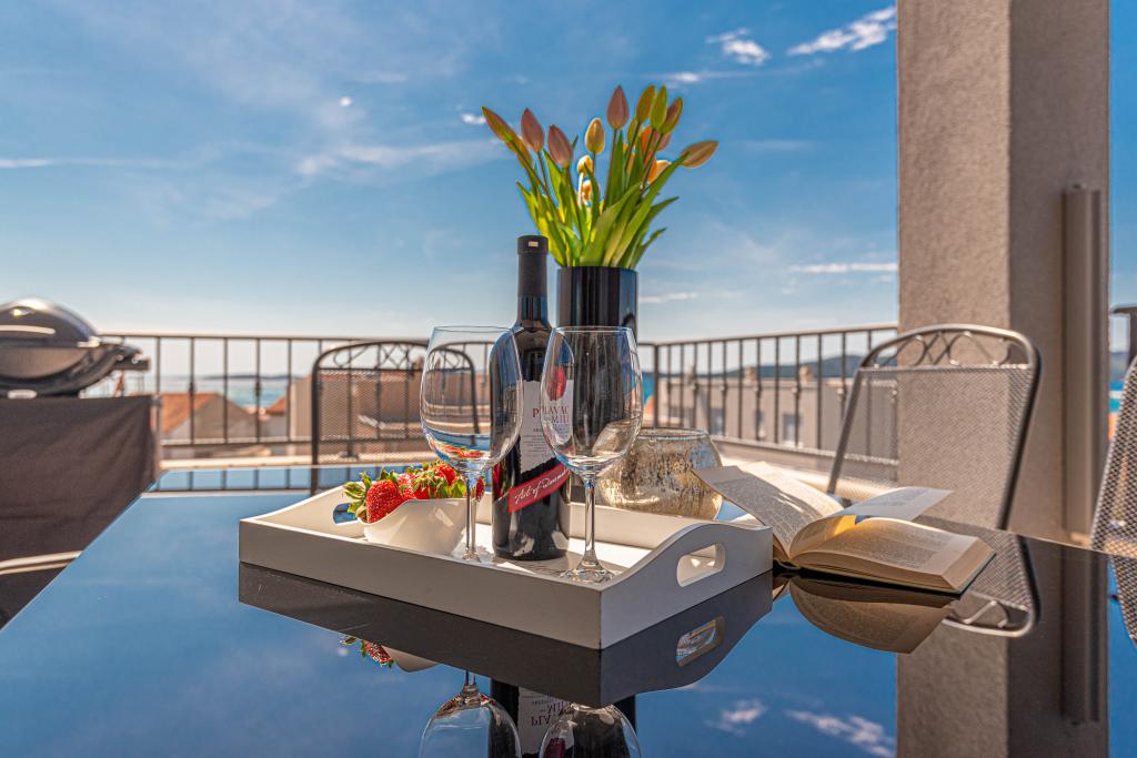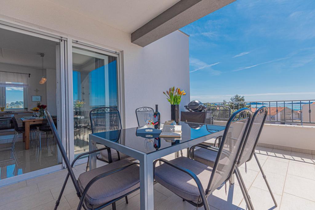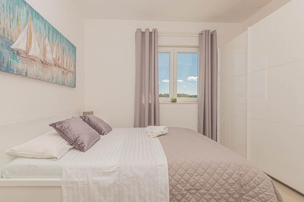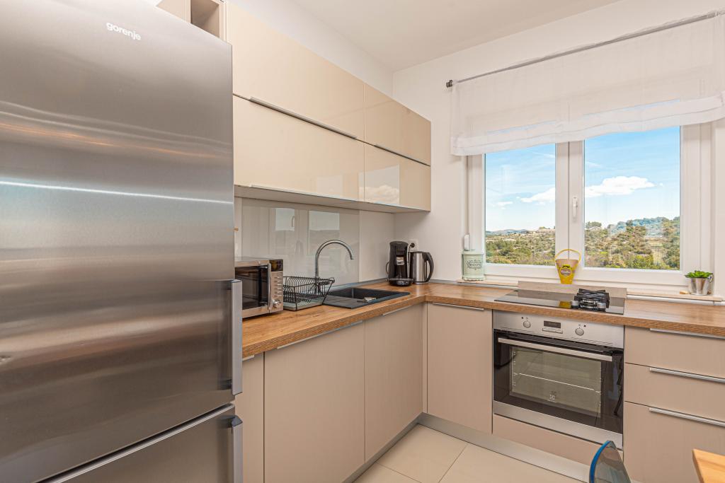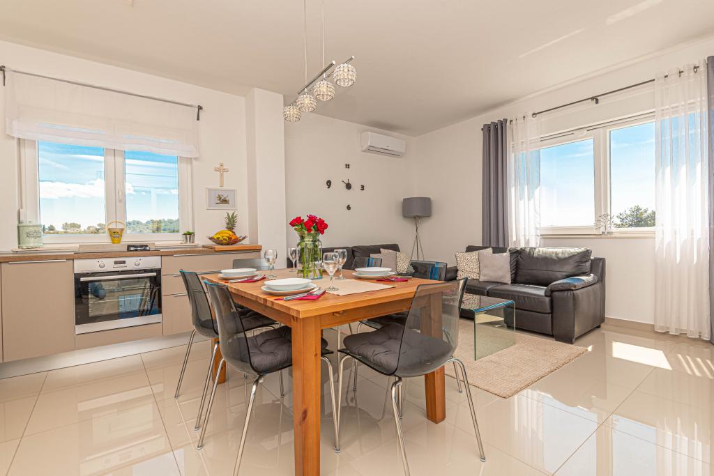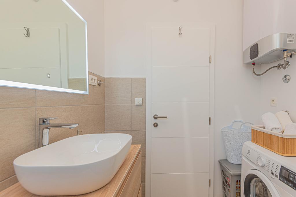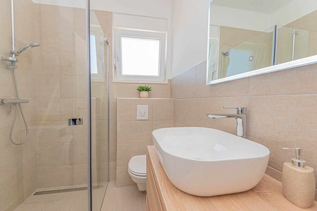 This modern accommodation is perfect for an unforgettable family vacation with a wonderful view of the archipelago and a unique sunset. Brand new apartment with terrace and sea view includes 3 bedrooms, living room, flat screen TV, equipped kitchen and 2 bathrooms with shower. Towels and bed linen are included in the apartment. It is located 500m from the beach and 2 km from the Solaris aqua park and 3 km from Šibenik. There are shops, pizzerias and top restaurants nearby. Parking is private and free, as is the WIFI network. The nearest airport is Split Airport, 55 km away. The apartment is fully air-conditioned. A large terrace with a table and chairs for enjoying the evening hours in a very quiet part of Brodarica.