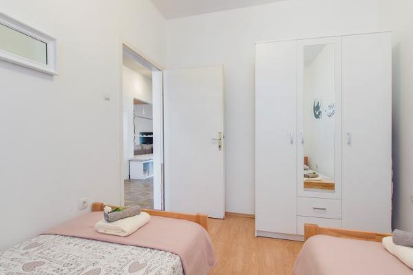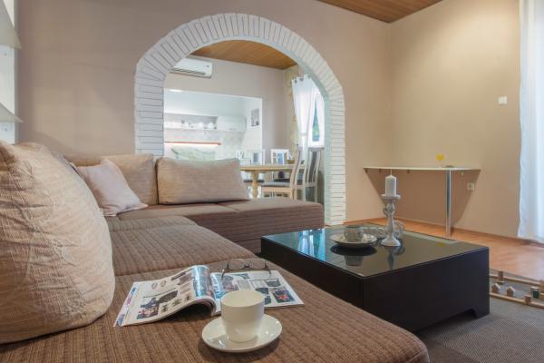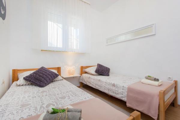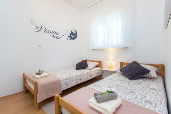 Modern furnished apartment of 100 m2 located in Brodarica, a quiet place a few kilometers from Šibenik. Apartment Pianino is located only 40 m from the beach and has a sea view. It consists of two bedrooms, bathroom, toilette, fully equipped kitchen, spacious living room and terrace.