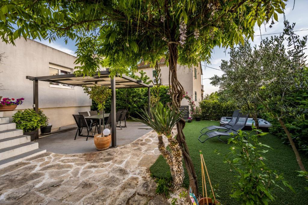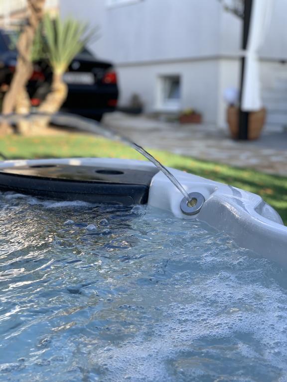 Modern apartment of 85 m2 on the ground floor of the house with 2 bedrooms - one with a double bed 180 cm, the other with a double bed 160 cm and a sofa bed (for 1 adult or two children). At the guest's request, it is possible to add a baby cot. The living room is spacious with a large sofa bed for 2 more people, a dining room, a modern kitchen with a dishwasher, a refrigerator with a freezer, an oven, a stove, all necessary appliances and dishes, and a dining room. A large bathroom with a bathtub, and a washing machine is also available. Terrace in front of the house with a covered gazebo and a table with chairs, a jacuzzi and deckchairs, and a barbecue in the garden. Free parking for two cars. Free wi-fi. Air-conditioned living room and both rooms. The beach is 150m down the street. There is a shop 100m from the house. There are also 3 beach bars/cafes on the beach, one of which has a playground for children in the shade. Solaris beach resort approx. 1 km from the house with a beach, restaurants, aquapark and facilities for children and adults.