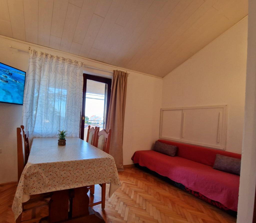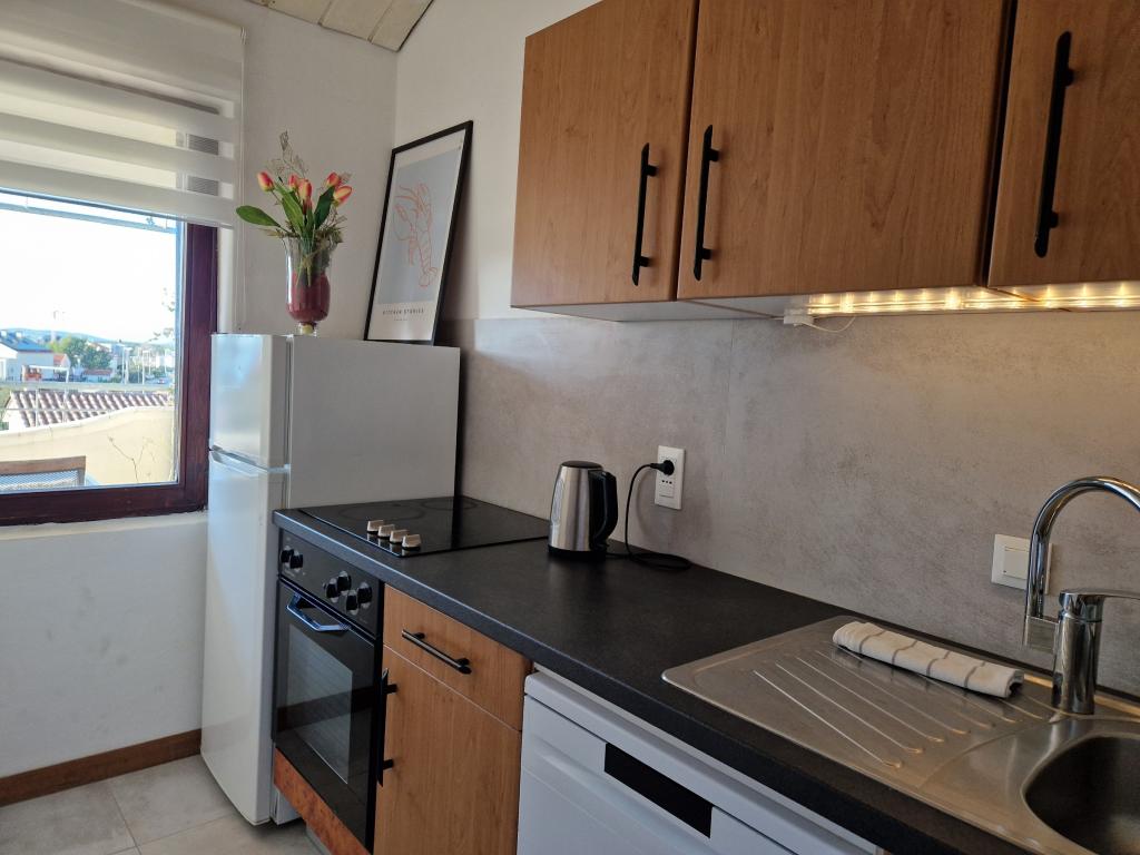 Fully equipped apartments in Brodarica near Šibenik. In addition to the apartments, there is also a garden with a playground, a barbecue and a spacious parking lot. The beach is 50m away (1 minute walk). All amenities nearby - bakery, shop, restaurant, pizzerias, promenade by the sea, local bus stop. Shopping center "Dalmare" 5 minutes away. by car/bus. Šibenik is 10 minutes away. by car/bus. NP Krka is 20 km away. Brodarica stretches 6 km along the coastline with its promenade and beaches. In the nearby town of Šibenik, you can enjoy medieval streets and fortresses, as well as a rich gastronomic offer. Friendly hosts :)