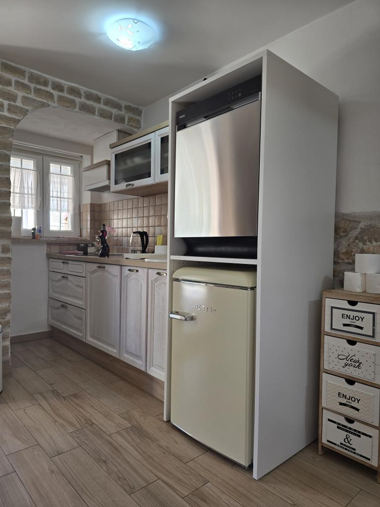Fully and modernly equipped apartments in a quiet part of Brodarica, located 5 minutes' walk from Rezalište beach on one side and Amadrie Park beach on the other. Rezalište beach has "expanded" in the last 2 years and now has a couple of cafes, cocktail bar, disco, fast food, ice cream (multiple types and locations). There is also a water park for children, and jet skis can be rented for those a little older. Half-day or full-day boat rental is also possible. The second beach is a beach within the Amadrie Park resort. There are 2 more attractions here that cannot be found in the Slaughterhouse, namely Wind Rose, a water sports center that offers SUP, windsurfing and E-Foil, and a large newly built Aquapark. Each apartment has its own spacious terrace. The grill/oven can be used by all guests of the apartment. Each apartment has its own parking lot.