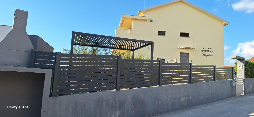 Apartments Bajama are located in the Šibenik suburb of Brodarica, only 3km from the center of Šibenik. In the house there are two modernly decorated apartments categorized with 4 stars each with two comfortable bedrooms, modern equipped kitchen and living room and two bathrooms and a toilet. From the apartment 1 guests can enjoy the sea view from their own balcony, while guests from Apartment 2 have their own direct exit to their own terrace, where the common yard with pool is continued. In addition, guests have access to a barbecue, a sunbathing area for sunbathing, sun loungers, an outdoor shower, a common exercise / game room and parking spaces in a fenced yard. Only 100m from the pebble beach with beach bars and children's facilities, 1.5 km from the Solaris resort with the famous Aqua Park and 3 km from the center of Šibenik, a city rich in cultural and historical heritage, Bajama vacation home is ideal for family vacations.