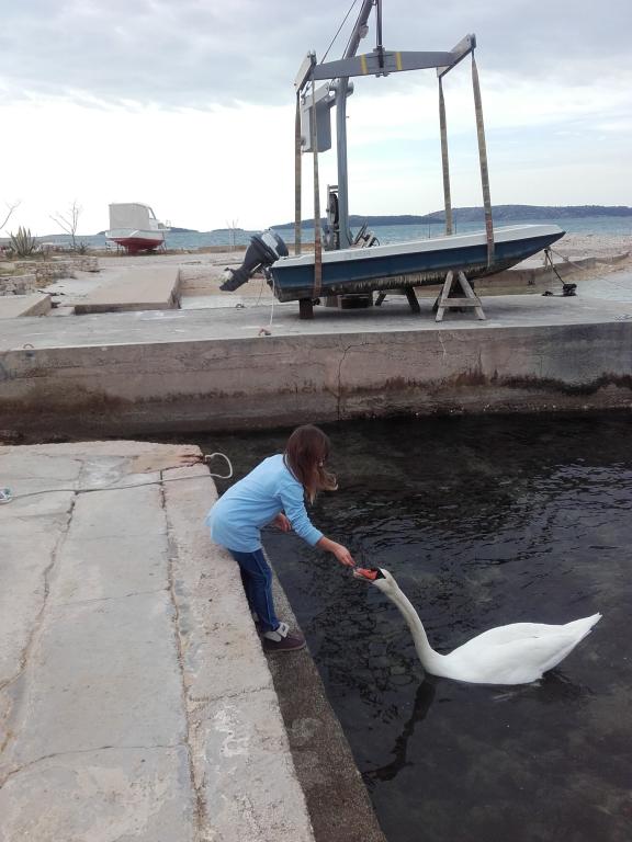 Apartment in a great location by the sea, close to the store and next to the Pizzeria Delfin where you can eat inexpensively and well. It is spacious, equipped with the necessary things from towels, pots, stove to washing machine, air conditioning literally everything is there. The owners were very friendly and helpful. We were there for the first time and we will definitely come back there again.