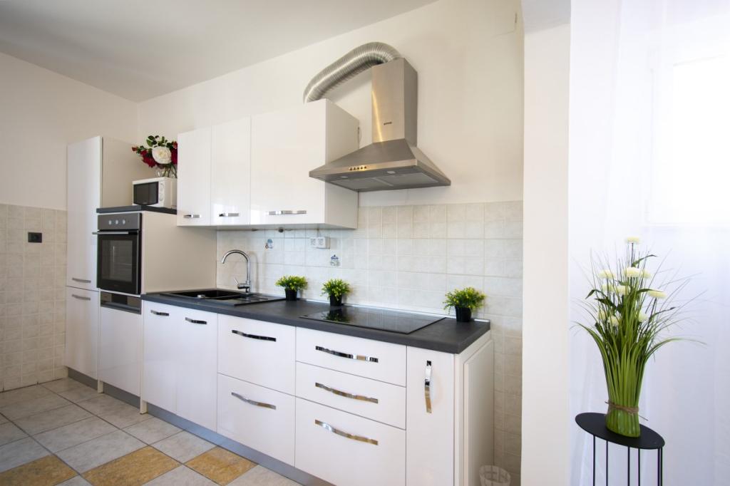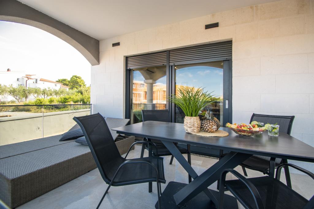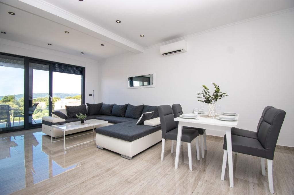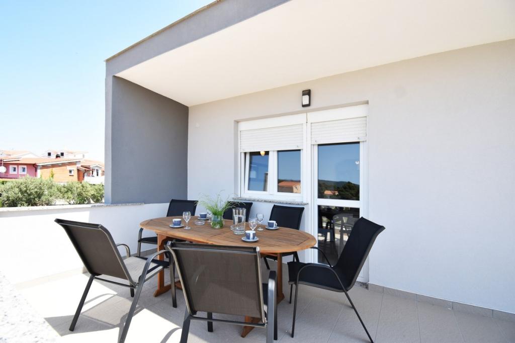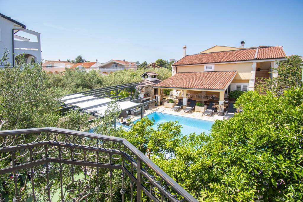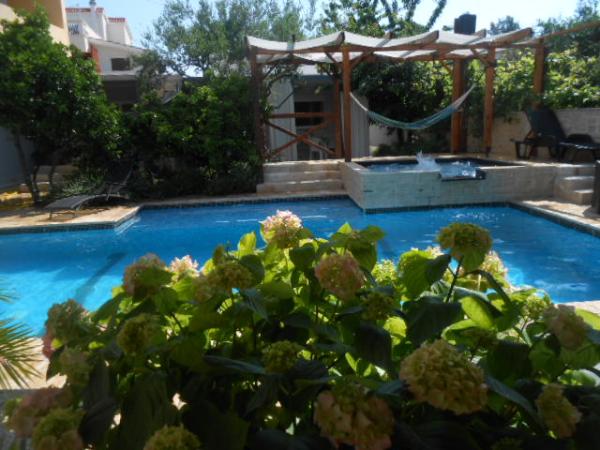 The house for 10 people with a swimming pool and jacuzzi is located in a quiet area of Brodarica, surrounded by plenty of greenery and flowers. The first two apartments are on the ground floor, one is 45 m2, and the other is 50 m2. Each apartment has a double bedroom, a kitchen, a sofa bed, a bathroom and a terrace with a table and chairs. The third apartment is 90 m2, located on the first floor, has two large double bedrooms, a large living room, kitchen, bathroom and a 45 m2 terrace with a table and chairs. It is suitable for a slightly larger family and friends. The apartment is air-conditioned. The fourth apartment is luxuriously arranged, about 100m2, has a large living room, a fully equipped kitchen, a large room with television and air conditioning, the apartment also has a sauna. there is a jacuzzi with a large terrace on the roof. each apartment has air conditioning and each room also has a television. The pool is shared. The house is 5-6 minutes' walk from the sea. Next to the house there are two more apartments, one is 110m2 luxuriously furnished, and the other is 55m2.