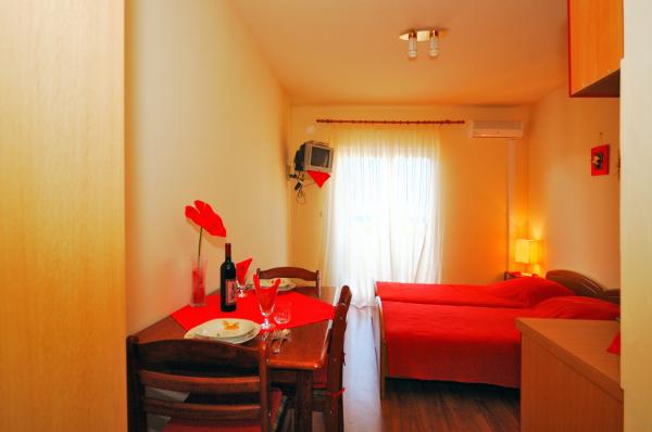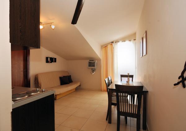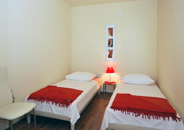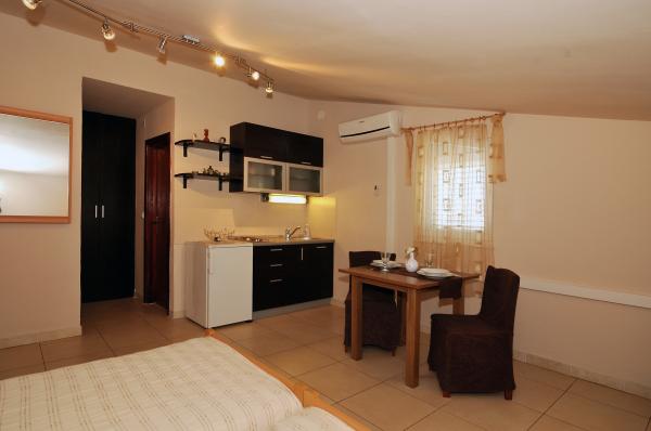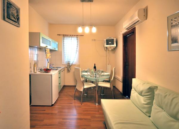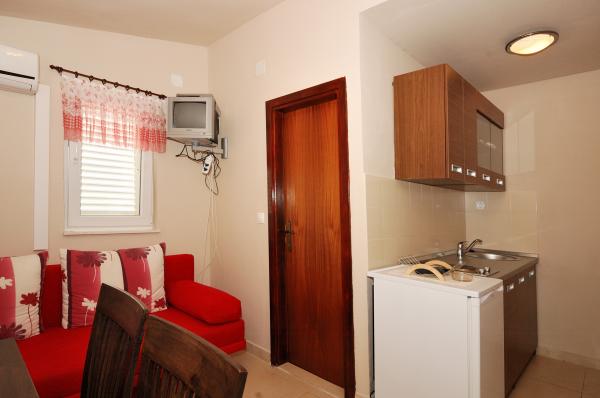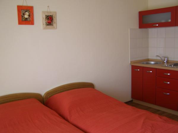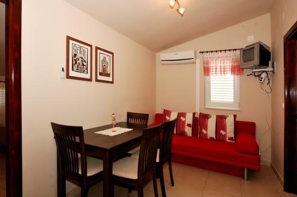 Pleasant, newly renovated apartments are located at the very beginning of Brodarica, just a few minutes walk from the beach in Brodarica. Not far from the apartment there is the Krka National Park and the island of Krapanj, the lowest island in the Mediterranean with a long history spužarstva. Studio apartments consist of a room where there is a kitchen, two beds, a separate bathroom, a balcony (all except A5). The apartments are suitable for 4 persons consists of 2 bedrooms, bathroom, kitchen-living room with sofa bed, balcony. The apartments are suitable for 2-4 people, consisting of kitchen-living room with sofa bed, double bedroom, bathroom, balcony (all except A8). All apartments are air conditioned. Guests have access to TV, satellite, and most units have balconies with sea view. Guests can use the grill, and parking space.