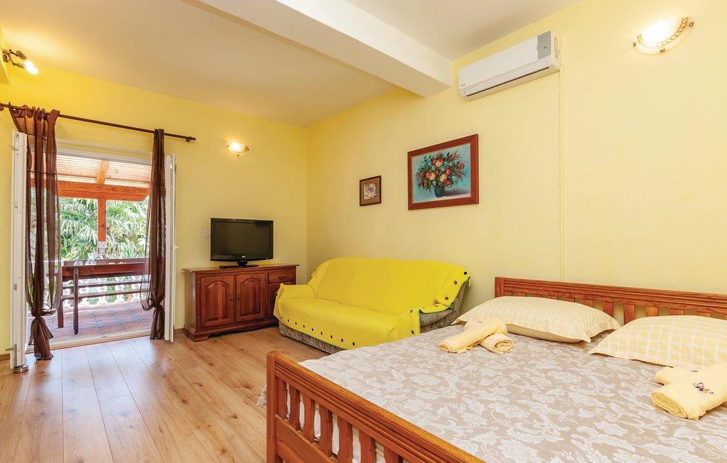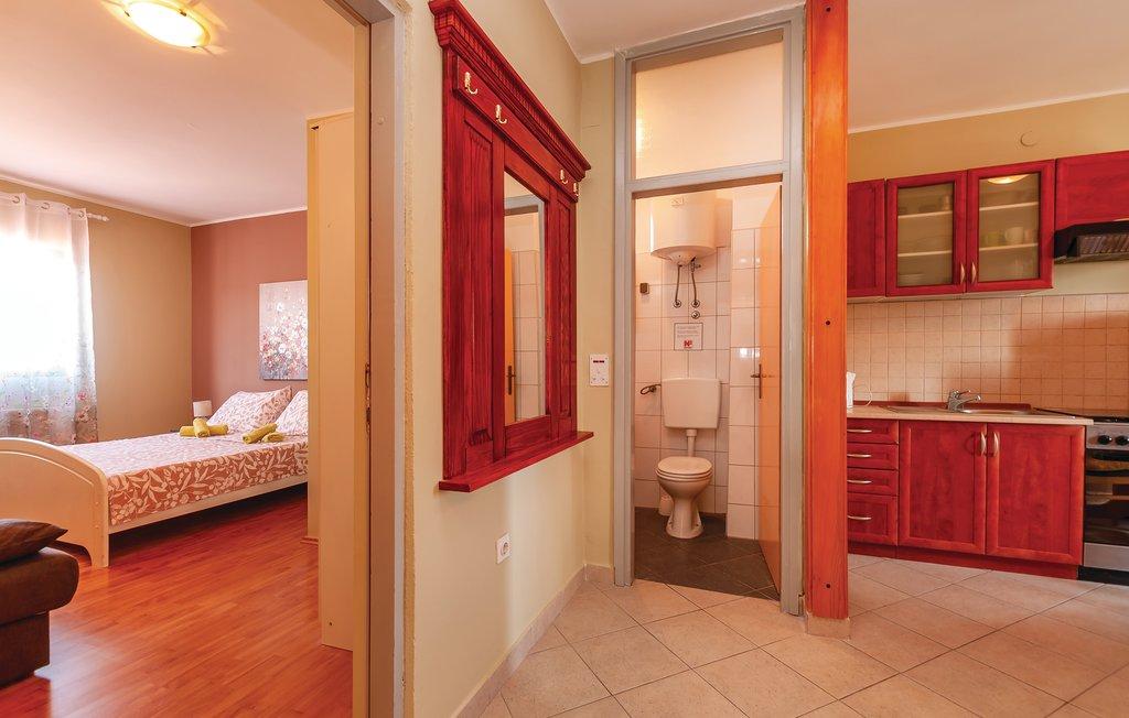 The facility is located 5min walk from the beach in a quiet mjestuudaljenom of prometnicei noise. Each apartment has garden furniture either on the terrace or balcony, and there are two barbecues, open-ended, which guests can also use. . The courtyard is nicely decorated in a Mediterranean style with lawns, palm trees and other plants.