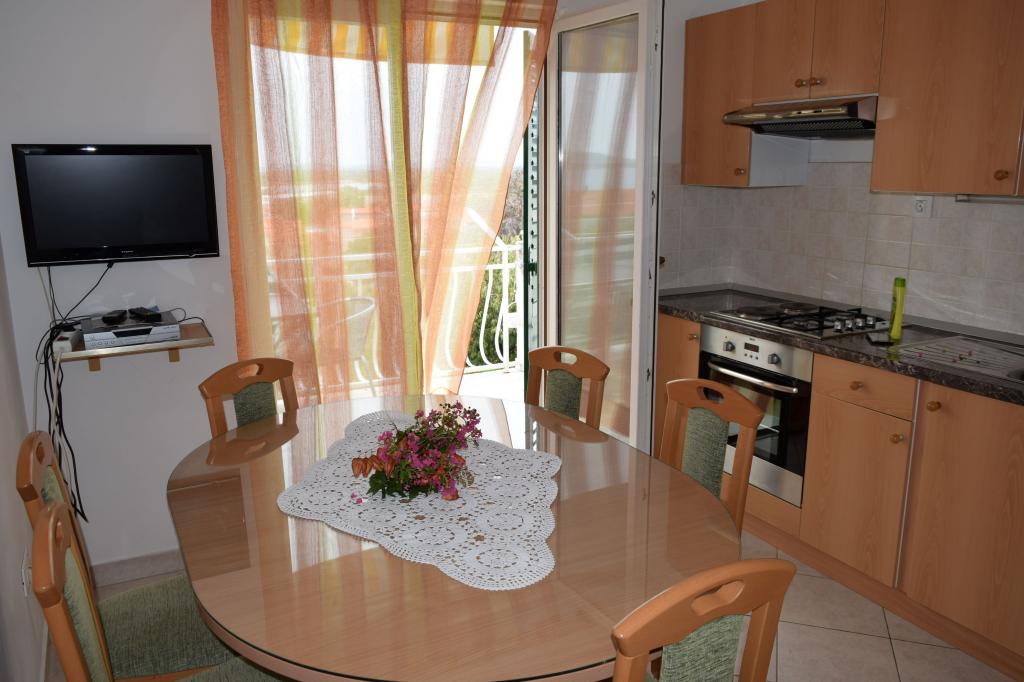 Ms Sandra welcomed us warmly and strangers. It is very nice and friendly. Everything OK The apartment we lived two families. Large balcony with sea view. Apartment nice, clean, with air conditioning. Everything agrees with photographs. Beach clean 300 m down the hill, with shower, water attractions, bar, restaurant, cafe, Recommended for families with deťmi.Bolo us great. Surely to them vrátime.Bola's probably best holiday Thank you.