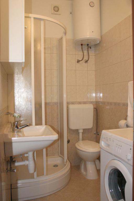 Friendly and happy owners. Cleanly and nice fully equipped apartment. Every living room has own air condition. Three bathroom - it was perfect, if stayed in 8 people. Washing machine - good for washing sun towels. Smaller kitchen but terrace is large with beautiful view of the sea. Nice smaller beach with sun umbrella / 20 kuna per day. Small Market about 200 m, Shopping center (Plodine, Lidl) about 3 km, Solaris Resort Sibenik about 2 km (Aquapark - new 2013 - 100 kuna per person over 6 years old, 70 kuna child under 6 years old).