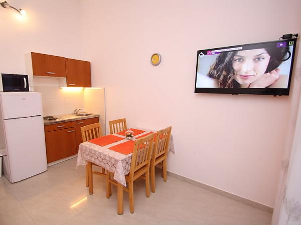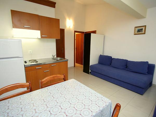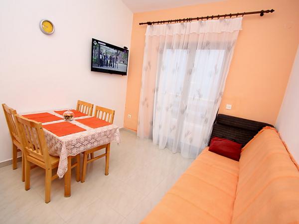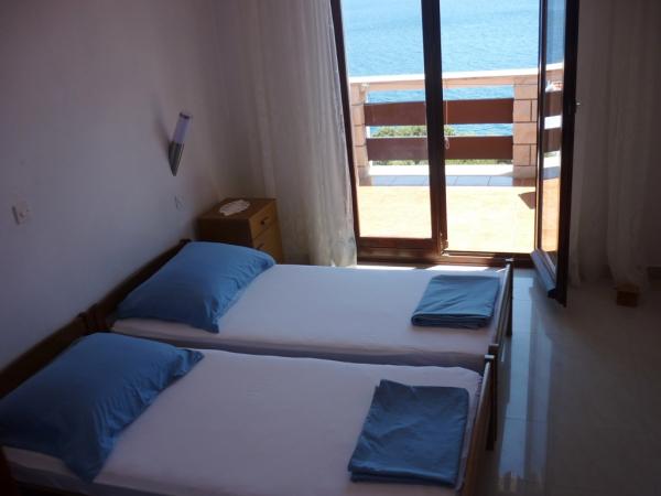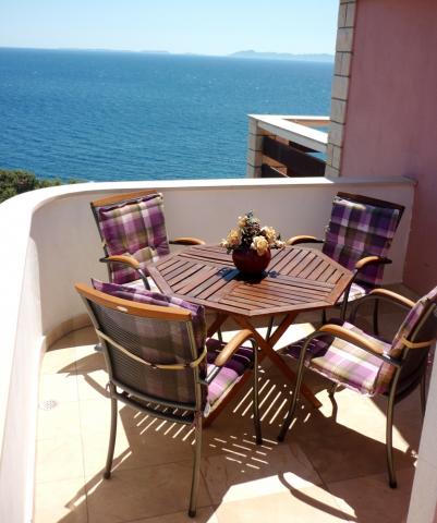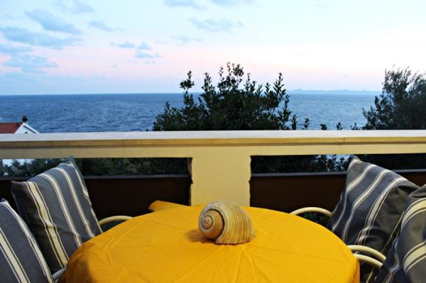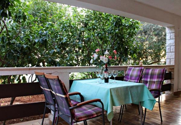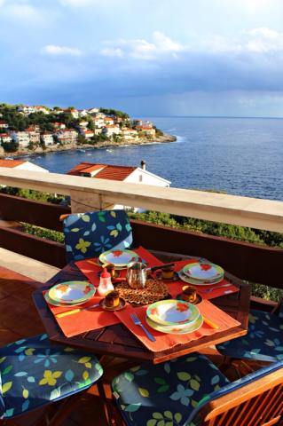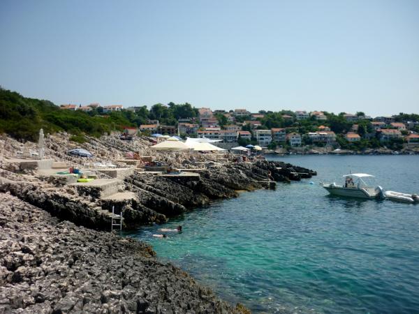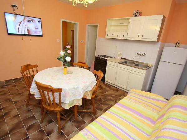 Nice, cozy apartment house, in a quiet, sunny resort which offers beautiful views of the sea and the bay. The house is situated to the south, and is located 70 meters from the beach. To enjoy the pleasant summer nights, sharing all the guests can use the terrace of 54 m2, which includes a large table and two chairs in which as many as 14 people may freely associate. To make the experience complete socializing on the terrace there is a grill that allows guests to prepare meals for their taste. The house has wireless internet access so guests can easily be connected with the entire world. Beside the house is parking so guests do not have a problem with leaving his car. Rocky-concrete beach is only 70 meters from the house and the beautiful pebble and sand beach Cereal one kilometer away. Coffee bar is 200 meters, restaurant 350m, a store to buy groceries is located 300 meters from the accommodation.