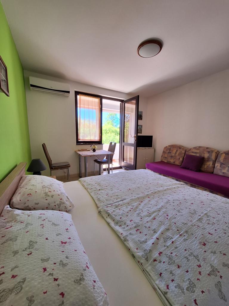 On the first floor of the apartment block, a balcony with a view of the forest and greenery. Peaceful and comfortable to sleep. Nearby is a tennis court, basketball court, bicycle paths, promenades, and the most beautiful and largest olive grove in Croatia. A favorite family resort for nature lovers as well. Natural beaches, marina, grill, restaurants, shops, bakery, pastry shop and post office are available in the immediate vicinity of the apartment.
